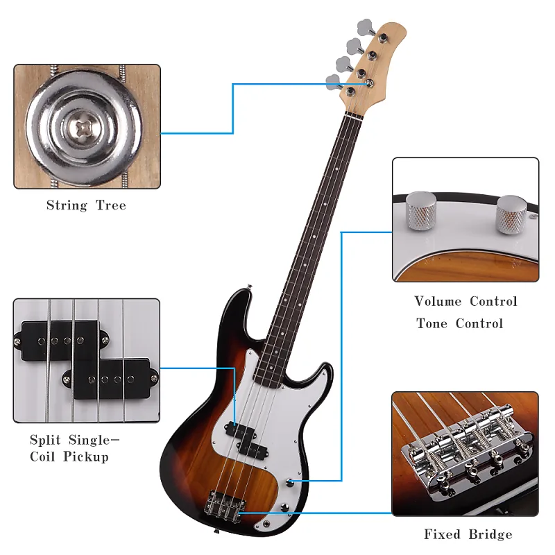 Для создания безупречного басового эффекта вам просто необходим профессиональный бас-гитара во время исполнения на гитаре. Эта изысканная электрическая бас-гитара в стиле "Горящий огонь" золотого цвета - именно та, которую мы с радостью рекомендуем вам. Хотя она выглядит довольно похоже на обычную гитару, по своим функциям она значительно отличается. По сравнению с обычной гитарой у нее более толстые струны и большее натяжение струн. Она расположена на низкой частоте, что делает ее превосходной в создании великолепного басового эффекта. Более того, эта бас-гитара изготовлена из превосходной древесины и синтетических материалов, так что вы можете смело брать ее домой для развлечений!