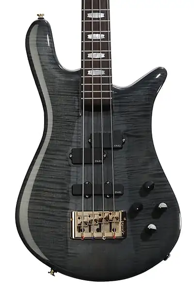 Электрический бас с грифом из клена через корпус, крылья из клена, накладка на гриф из розового дерева, 1 раздельная катушечная звукосниматель, 1 звукосниматель с одной катушкой и двухполосный предусилитель - черная лакировка.