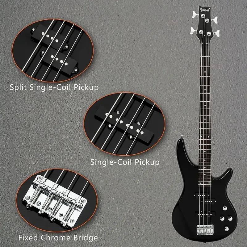 Эта бас-гитара полного размера является отличным подарком для начинающих и начинающих музыкантов. Она позволяет регулировать высоту струн, имеет 4 струны и предлагает точную настройку грифа на верхней части грифовой накладки для оптимальной игры.