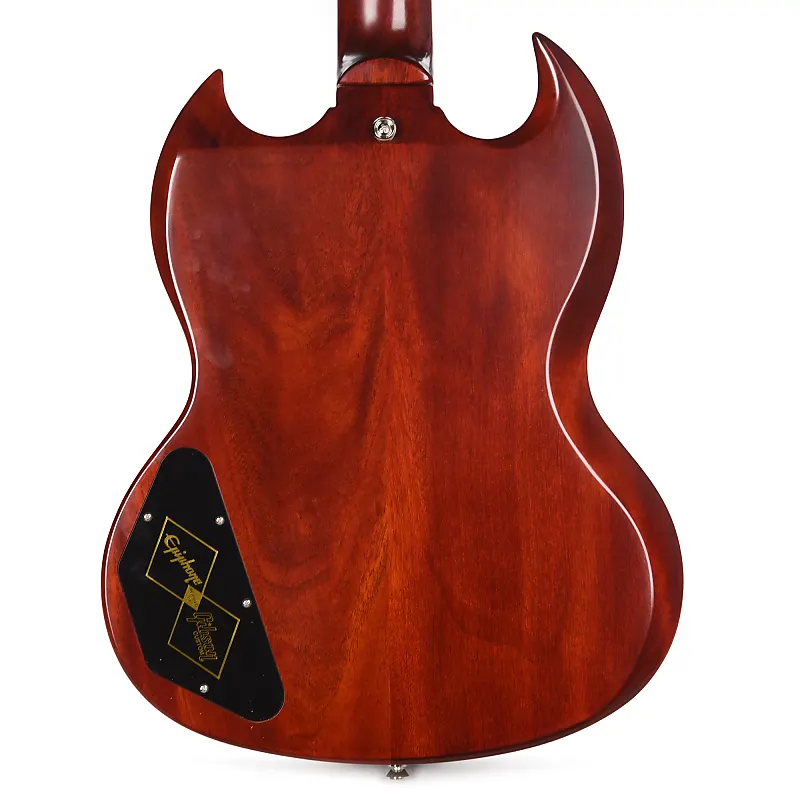Модель 1964 SG Standard с тремоло Maestro Vibrola воссоздает один из самых любимых годов выпуска модели SG - 1964 год. Хотя знаменитая 1964 SG Standard использовалась такими выдающимися музыкантами, как Джордж Харрисон и Эрик Клэптон, этот год стал примечательным для модели SG в целом. К 1964 году менее интуитивное тремоло Sideways Vibrato было заменено надежным Maestro Vibrola, профиль грифа стал чуть крупнее по сравнению с ультратонкими грифами, установленными на некоторых ранних моделях SG, а баланс, удобство игры и внешний вид SG достигли своего апогея. 1964 год также стал первым полным годом, когда SG отказалась от использования названия Les Paul, которое применялось ранее. Теперь Epiphone с гордостью представляет переиздание модели 1964 SG Standard с тремоло Maestro Vibrola - потрясающую реконструкцию легендарной модели. Созданная в сотрудничестве с Gibson Custom, Epiphone 1964 SG Standard с Maestro Vibrola является самой аутентичной реконструкцией модели 1964 SG Standard, когда-либо выпущенной Epiphone. Все классические элементы, которыми известна и любима модель 1964 SG Standard, присутствуют здесь, включая цельный гриф из махагони с длинным шейковым шипом для повышенной стабильности и сустейна, удобный, быстрый в игре профиль SlimTaper, а также накладку на гриф из красного дерева с окантовкой. Также имеются накладки на гриф из перламутра в форме трапеций, старинный логотип Epiphone на головке грифа из перламутра и старинная инкрустация в виде короны Gibson на головке грифа в стиле Gibson «открытая книга». Корпус из двух частей махагони с центральным швом обладает удобными и характерными скошенными краями, которые определяют стиль винтажного SG и делают его удобным для удержания и игры. Электроника не менее впечатляющая: два хамбакера USA Gibson Custombucker с магнитами Alnico 3, ручная пайка к потенциометрам CTS, конденсаторы Black Beauty paper-in-oil, а также переключатель звукоснимателей и выходной джек Switchcraft. Винтажная глянцевая отделка прекрасно сочетается с никелевой фурнитурой. включая тюнеры Epiphone Vintage Deluxe «Double Ring». Также включен черный жесткий кейс с графикой Inspired by Gibson Custom, золотой фурнитурой и золотисто-желтой внутренней отделкой.