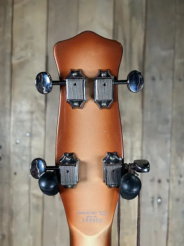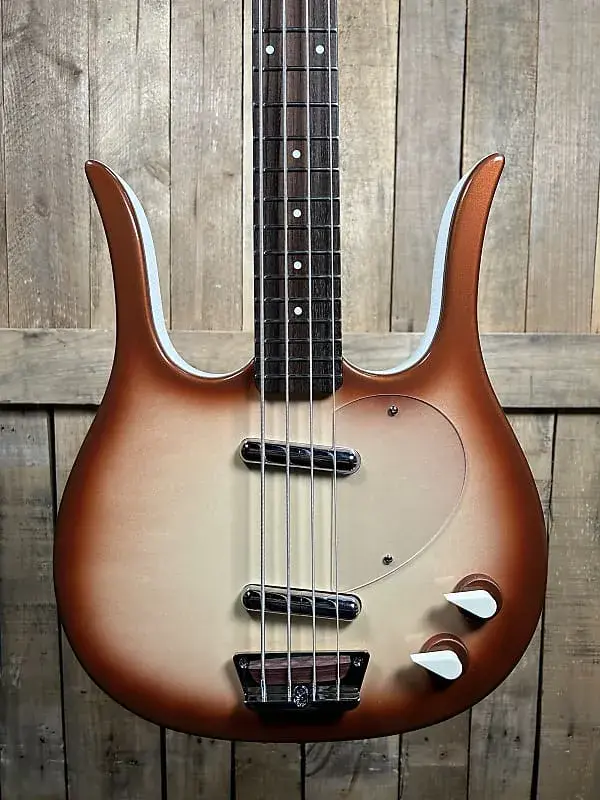 Bас '59DC Long Scale характеризуется классическим дизайном с двойным вырезом, за который известна компания Danelectro, и элегантным покрытием в стиле ретро Copper Burst. Это покрытие придает гитаре теплый металлический блеск, который выделяется на сцене, создавая уникальную визуальную привлекательность, гармонирующую с винтажным стилем.