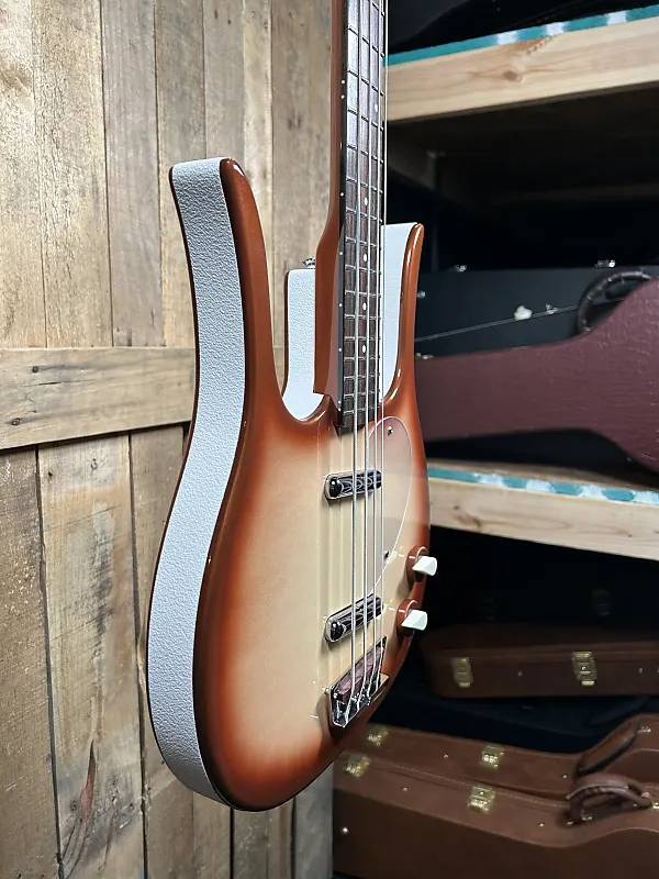 Бас-гитара Danelectro '59DC Long Scale в цвете Copper Burst - это впечатляющий инструмент, который сочетает винтажную эстетику с современной удобностью игры. Вот подробное описание: