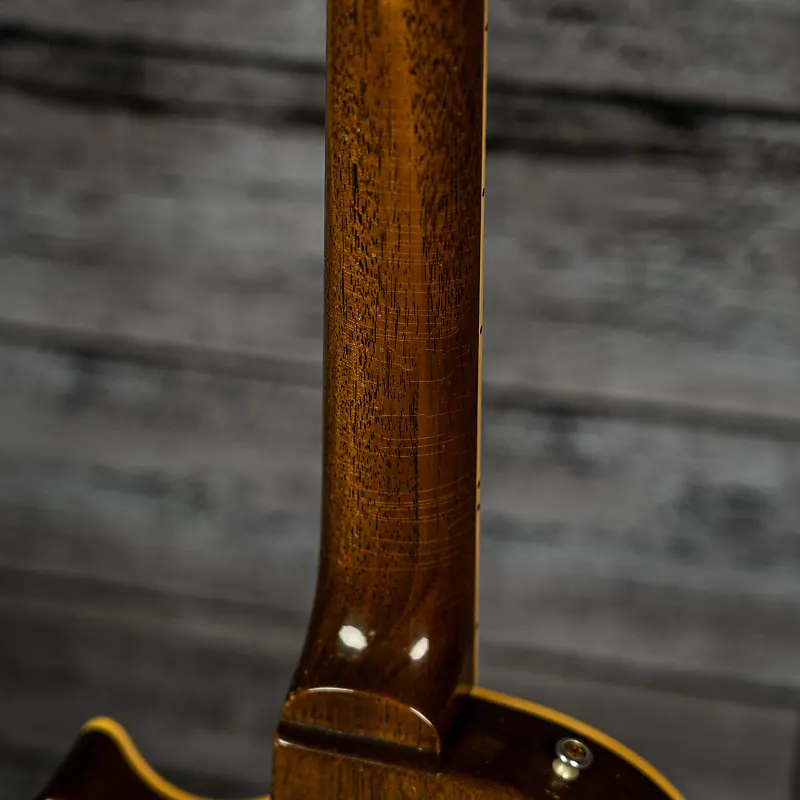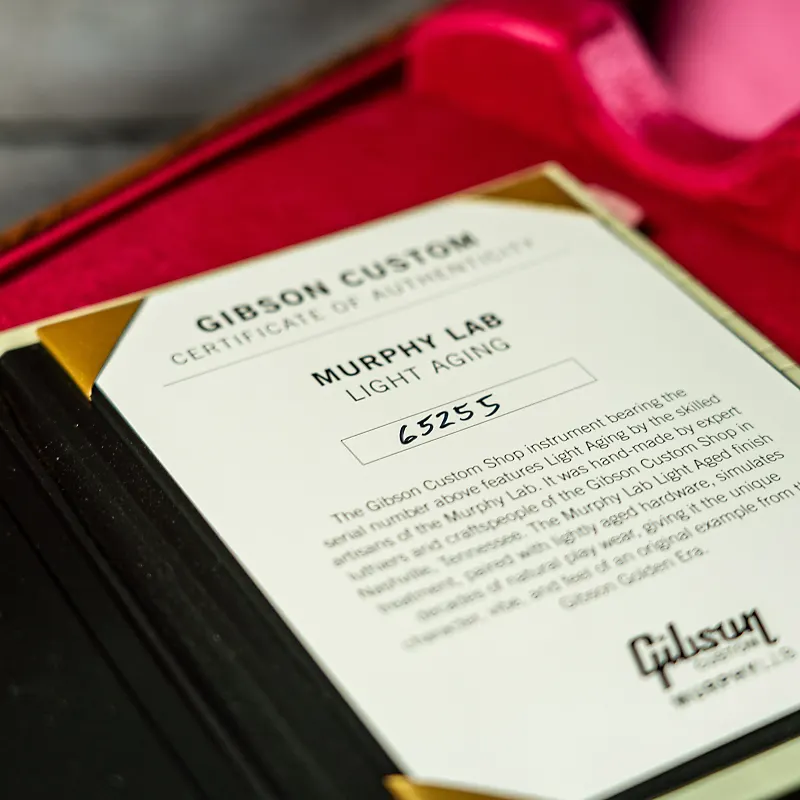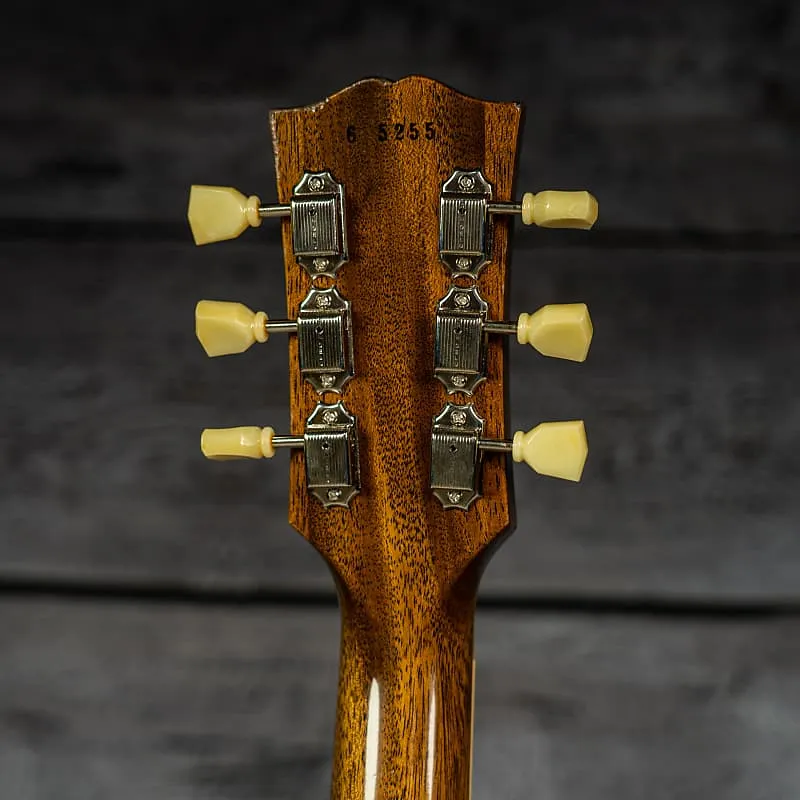 Этот Gibson Custom 1956 Les Paul Standard Bigsby - потрясающая модель Murphy Lab, выбранная дилером, которая сочетает классический дизайн 1950-х годов с уникальными особенностями. Она оснащена звукоснимателями P-90 и Custombucker для универсальных тонов и включает тремоло Bigsby для выразительной игры. Корпус изготовлен из махагона с кленовой накладкой, а гриф - из палисандра, что обеспечивает сочетание винтажного стиля и современной производительности в одном уникальном модифицированном шедевре.