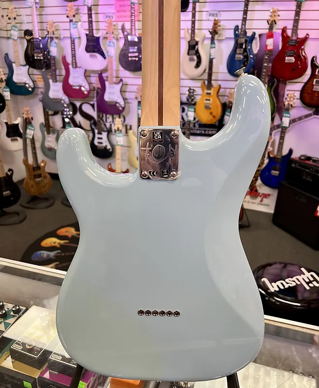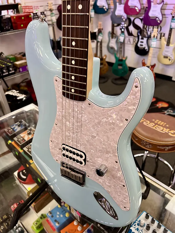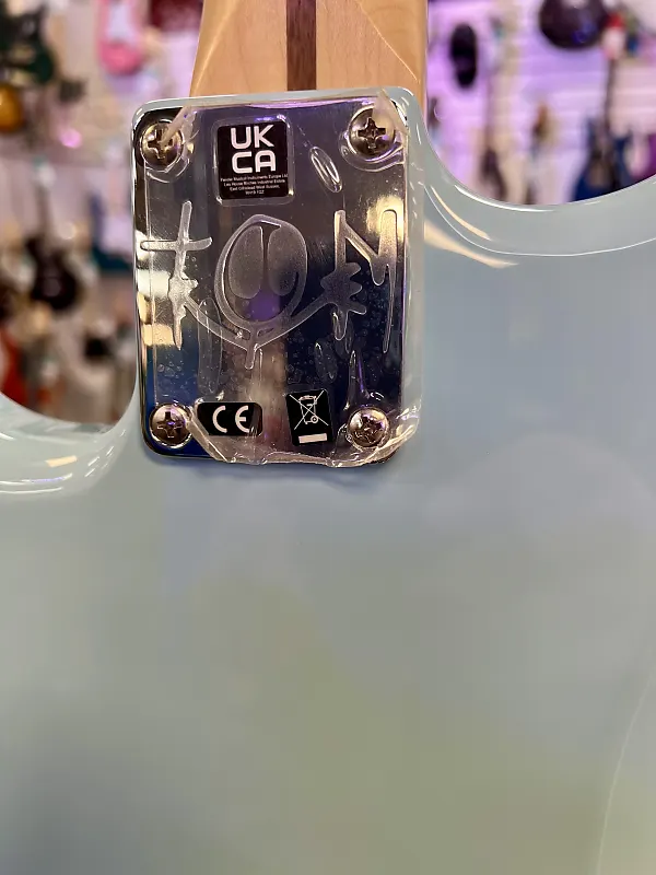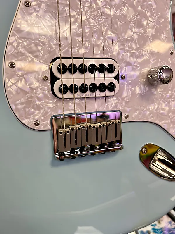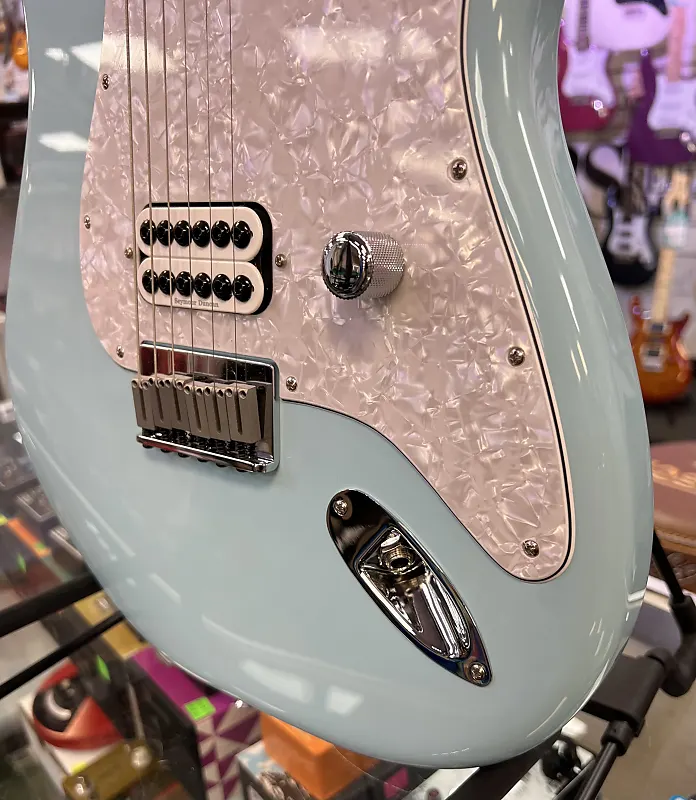 The Tom DeLonge Stratocaster оснащена хамбакером Seymour Duncan Invader, обеспечивающим огромный выход и турбоускоренный звук, идеально подходящий для мощных аккордов и рифов с хрустящей атакой. Но дело не только в мощности - упрощенная система управления, состоящая из одного главного регулятора громкости в сочетании с цепью treble bleed, сохраняет естественные высокие частоты гитары, обеспечивая блестящие чистые звуки и звонкие тона на грани перегруза. Удобная современная шея «C» оснащена медиум-джамбо ладовыми порожками на грифе из палисандра с радиусом 9,5 дюйма, обеспечивая современное ощущение и превосходное... играбельность. Другие особенности включают тюнеры в винтажном стиле и мост Stratocaster с фиксированными струнами и блоковыми седлами для классического внешнего вида, превосходной интонации и повышенной стабильности настройки. Индивидуальная накладка на гриф Tom Delonge украшена оригинальной графикой Делонга.