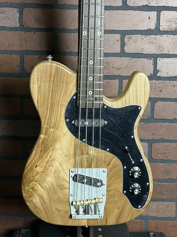 Коллекционное издание Woodcraft T. Master 4-струнного короткошеечного баса, сделанного из древесины вяза (корпус) и 250-летнего черного ореха (верх).
