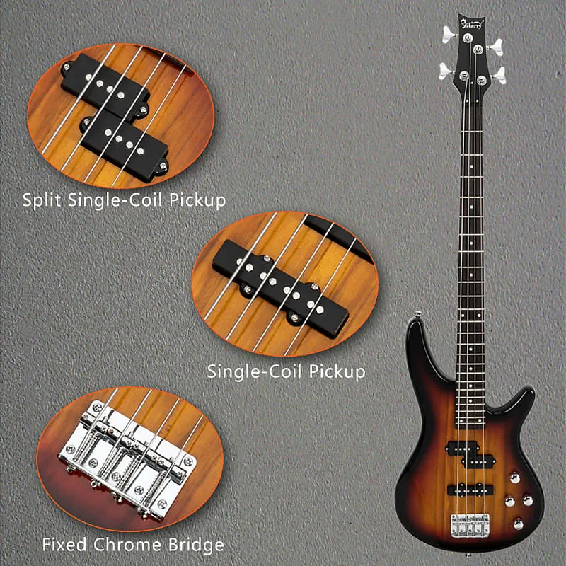 Чтобы создать безупречный эффект баса, во время выступления вам просто необходим профессиональный бас. Эта электрическая бас-гитара Glarry GIB полноразмерная, 4-струнная - именно та, которую мы рады вам порекомендовать. Хотя она внешне довольно похожа на обычную гитару, по функциональности она существенно отличается. По сравнению с гитарой, у нее более толстые струны и большее натяжение струн. Она настроена на низкие частоты, что делает ее идеальной для передачи замечательного басового эффекта. Более того, для этой бас-гитары использованы высококачественные древесина и синтетические материалы, так что вы можете смело взять ее домой для развлечений!