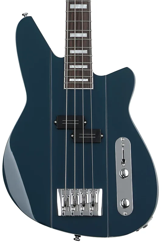 Электрический бас с короткой мензурой с корпусом из корины, грифом из корины, накладкой на гриф из палисандра и одним сингловым звукоснимателем - цвет High Tide Blue.