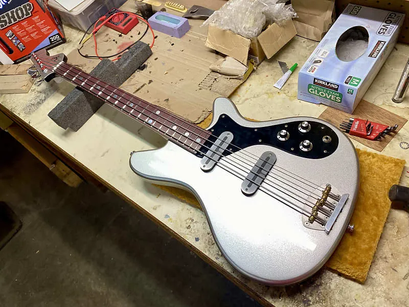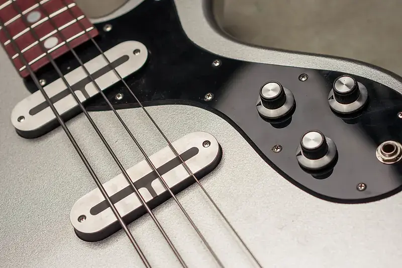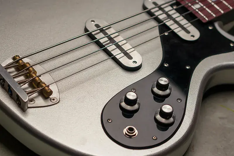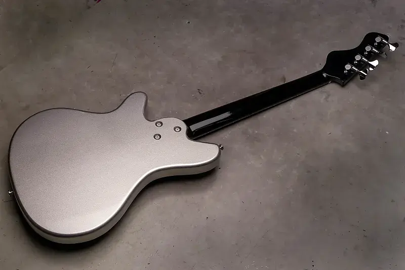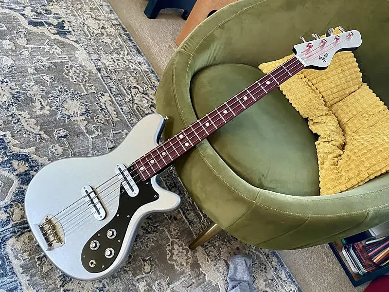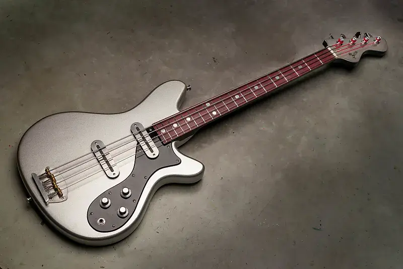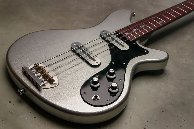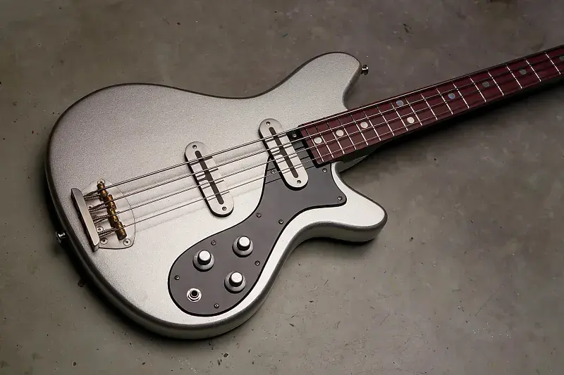 Этот бас оснащен 3-слойной кленовой грифом с грифовой накладкой из красного Richlite, корпусом из цельного ольхи с металлическим серебристым покрытием, двумя сингл-койл звукоснимателями Funktronic и индивидуальным мостом, изготовленным в собственном производстве. Это довольно забавный маленький бас, чтобы поймать атмосферу 60-х.