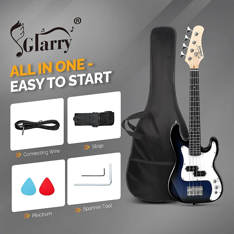 5. Полный комплект аксессуаров: включает 1 электрическую бас-гитару, 1 кабель для усилителя, 1 портативную сумку для гитары, 1 ремень на плечо и 1 медиатор для баса. Начните играть на бас-гитаре сразу после распаковки. распаковка