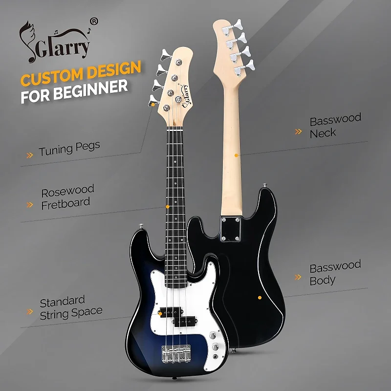 1. Стабильное качество и отличные ощущения: бас-гитара с 4 струнами изготовлена из высококачественного басового дерева для корпуса и стабильного палисандра для моста и грифовой доски.