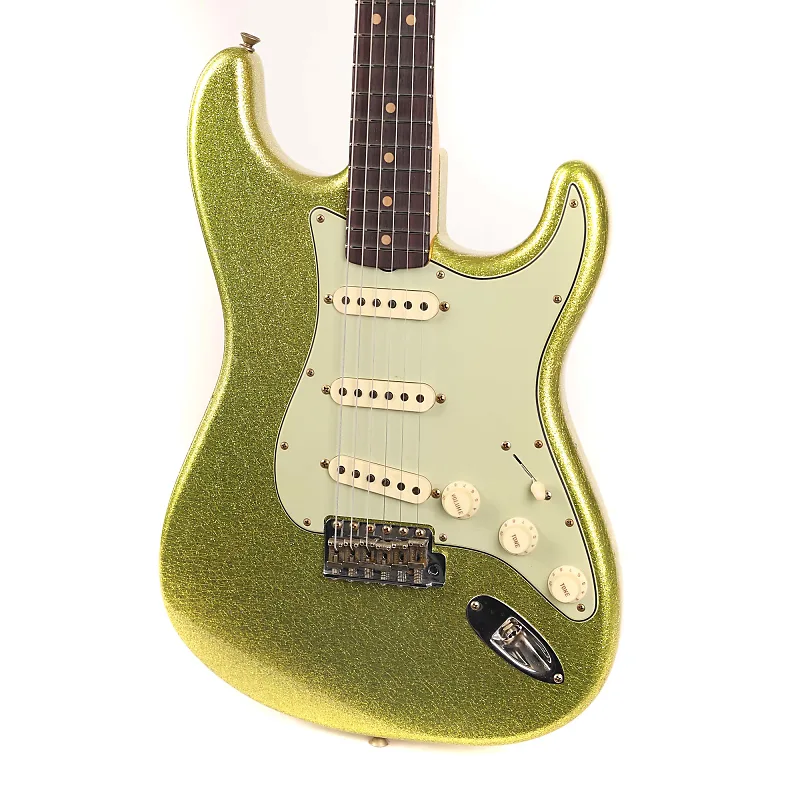 Эта заметная Strat - это Fender Custom Shop 1963 Reissue с отделкой Chartreuse Sparkle и обработкой Journeyman Relic! Гитара построена с грифом из кленового дерева класса AA с древесной текстурой birdseye и накладкой из розового дерева, радиус 9,5" и 21 узкий высокий лад. На борту установлены три пьезозвукоснимателя '60/63 для получения аутентичного звучания. Сделайте эту эффектную Strat своей уже сегодня!