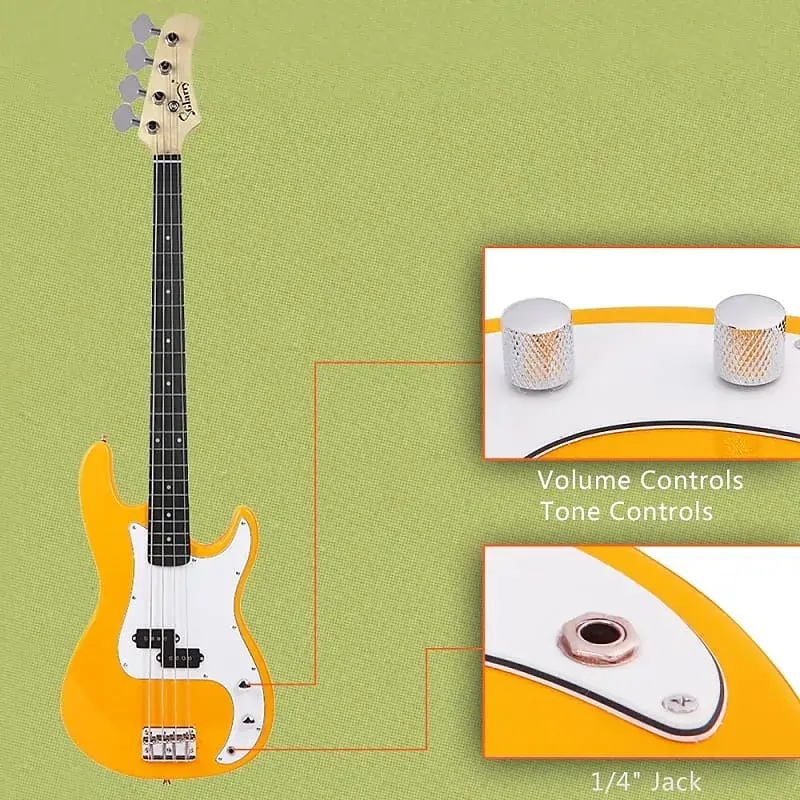 Этот комплект для начинающих электрической бас-гитары включает все необходимые аксессуары, включая усилитель мощностью 20 Вт с Встроенный динамик, выход для наушников и входной разъем. Вы можете управлять громкостью, высокими частотами, средними частотами, низкими частотами и телефонами, чтобы найти свой звук.