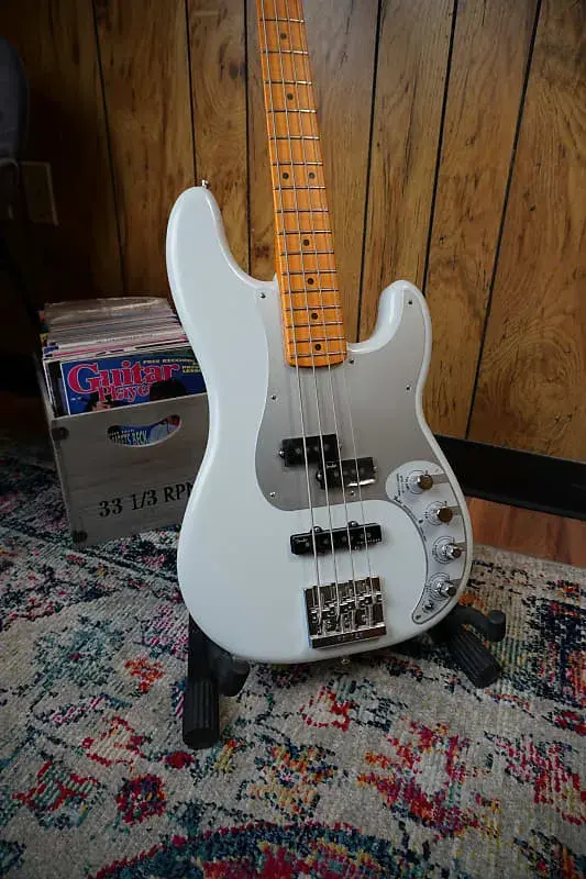 Оснащенный специально разработанными звукоснимателями Ultra II Noiseless Vintage, этот бас обеспечивает огромный тональный диапазон, от винтажного тепла до современной четкости, без намека на гул. Переработанный предусилитель обеспечивает беспрецедентный контроль, открывая бесконечные тональные возможности. Основные характеристики включают переключение S-1 для работы с активными и пассивными элементами, пассивный темброблок и 3-полосный активный эквалайзер с переключаемой среднечастотной полосой. Дополнительные удобства для сцены включают регулируемый мост HiMass с загрузкой сверху или сквозной струной через корпус, легкие тюнеры Fender с зауженными стержнями, накатанные алюминиевые ручки и однослойный анодированный алюминиевый накладной пикгард.