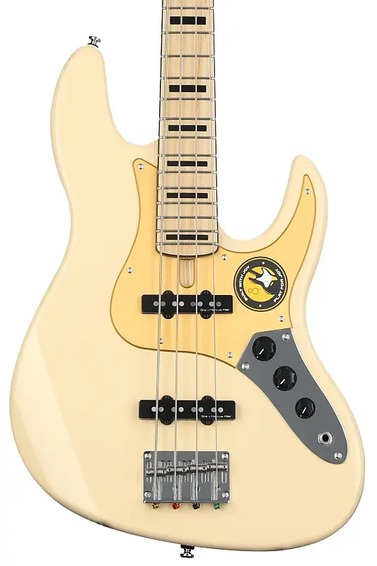 4-струнная электрическая бас-гитара с корпусом из ольхи, грифом из клена, накладкой грифа из клена и 2 сингл-койл звукоснимателями - винтажный белый.