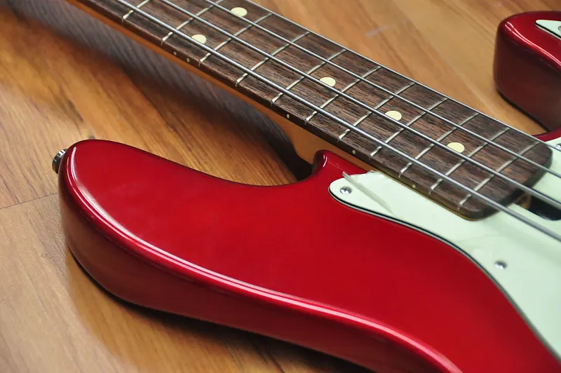 Этот бас звучит не только классически, он выглядит классически: мятная накладка звучит отлично на корпусе цвета Candy Apple Red. Даже желтоватые точки на грифе выглядят винтажно.