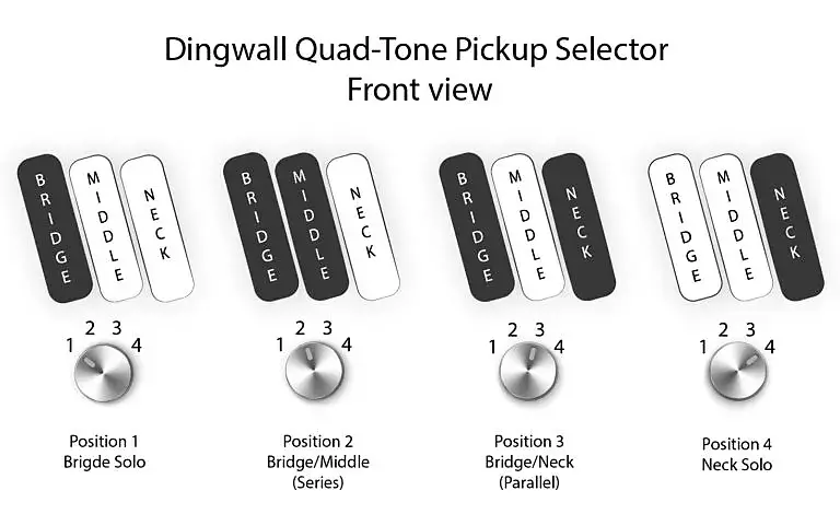 Переключатель Quad Tone Pickup: Позиция 1: мост, Позиция 2: мост и средний (стиль MM)
