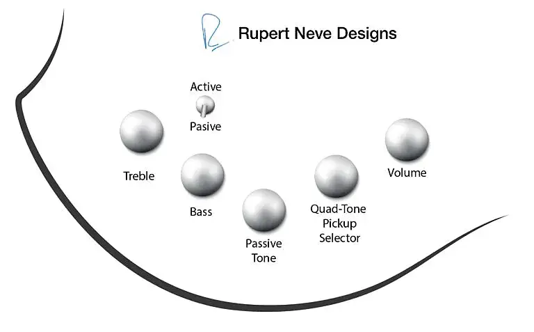Три неодимовых звукоснимателя Dingwall подключены к селектору Quad-Tone, ручке общей громкости, ручке тембра и двухполосному активному эквалайзеру, который оснащенным высококлассным предусилителем Rupert Neve Designs. «Прорывной сингл группы Duran, заглавная песня альбома Rio 1982 года, изначально был записан на консоли Neve, так что история уже была заложена», - говорит Шелдон. «Но команда из Rupert Neve Designs просто идеально передала тембр.»