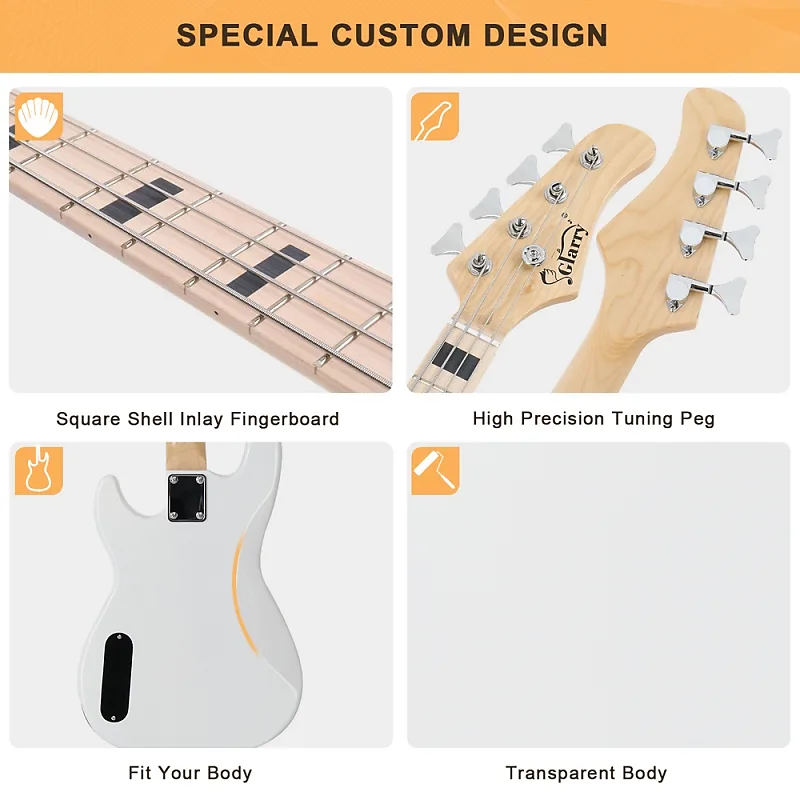 Наша электрическая бас-гитара - идеальный подарок как для начинающих, так и для начинающих музыкантов. Благодаря регулируемой высоте струн и настройке в верхней части грифа, каждая из 4 струн может быть точно настроена в соответствии с вашими предпочтениями.