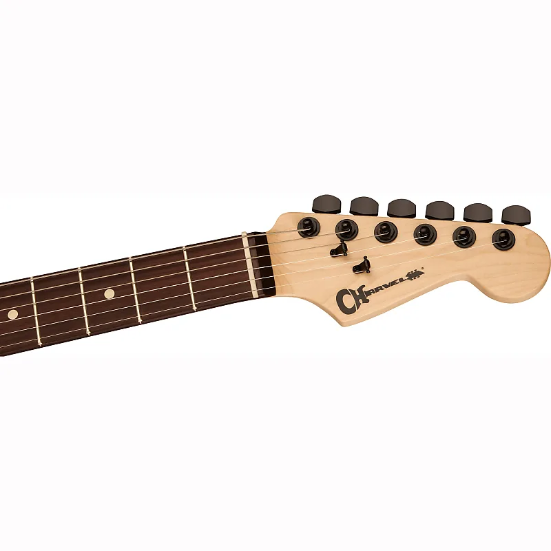 Регулятор громкости скрывает функцию push/pull катушка-разделение для еще более полезных тональных вариаций, идеально подходит для всего - от резких лид-звуков до плотной, массивной ритм-работы. Контроль тембра без нагрузки работает как стандартный регулятор тембра в положениях с одного по девять, выводя себя из цепи в положении десять для прозрачного звучания, позволяя полностью раскрыть естественный голос гитары. Мост Charvel HT6 с жестким креплением через корпус разработан для улучшенной интонации и повышенной сустейн и резонанса.