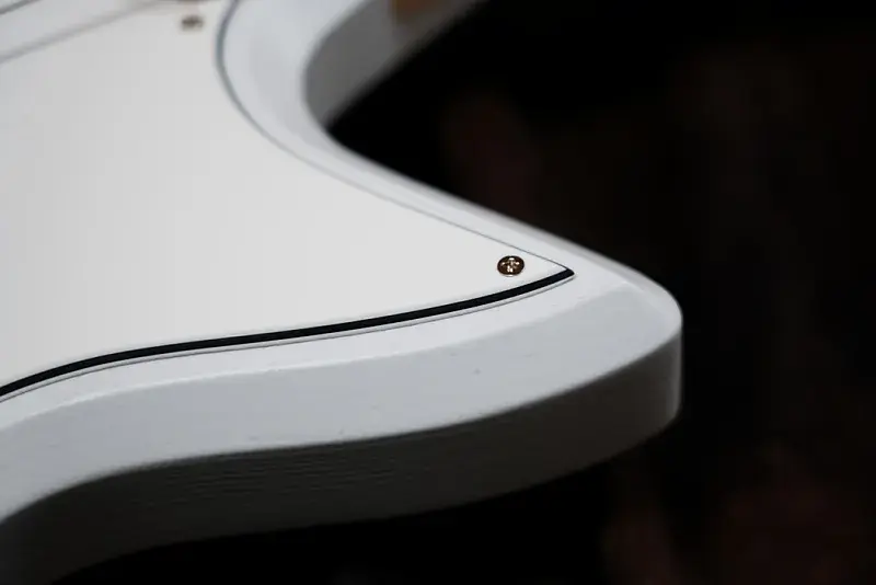 Незначительная разница в оттенках белого корпуса, крышек звукоснимателей и накладки создает трехмерное ощущение и при этом создает прозрачную атмосферу.