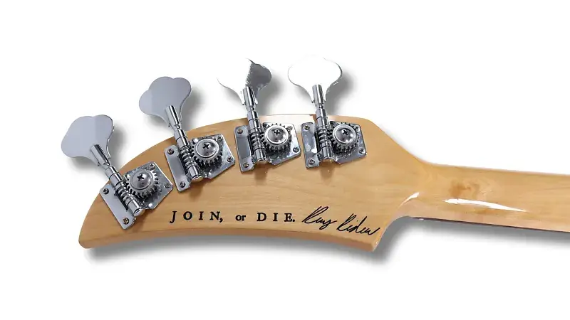 Представляем бас-гитару Disher Rattlesnake. Уникальная, многофункциональная бас-гитара с интересным акцентом в виде мультяшной гремучей змеи «Соединись или умри», созданной Бенджамином Франклином в 1754 году. (Объединяя две страсти Disher Music Gear: музыку и историю. Ведь что может быть более панк-роковым?) Будьте революционными. Творите историю вместе с историей.