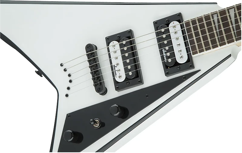 Другие замечательные особенности включают два высоковыходных хамбакера Jackson с керамическими магнитами, регуляторы громкости и тона, трехпозиционный переключатель, настраиваемый мост с продольной компенсацией и литые колки.