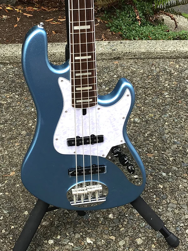 Сегодня мы представляем великолепную модель Darryl Jones 4 в цвете Lake Placid Blue. Вес - 9,8 фунта. Бас из серии Skyline Darryl Jones Signature выглядит похоже на нашу модель 44-60, но имеет более изогнутые контуры и выразительные вырезы, что добавляет винтажного стиля. Бас Даррила оснащен парой пассивных сингл-котл拾ков, специально разработанных Lakland. Три регулятора управляют звуком: громкость струн у бриджа, громкость у грифа и тембр. Перламутровые инкрустации и белая окантовка являются стандартом для моделей с грифом из индийского лавра.