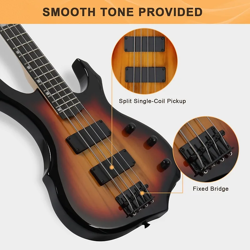 Созданная с комфортной шейкой и грифом, эта бас-гитара идеально подходит как для новичков, так и для опытных музыкантов. Высокопрочные лады обеспечивают плавность игры и долговечность.