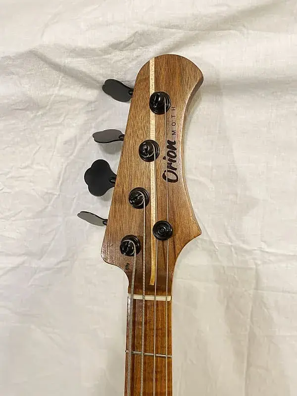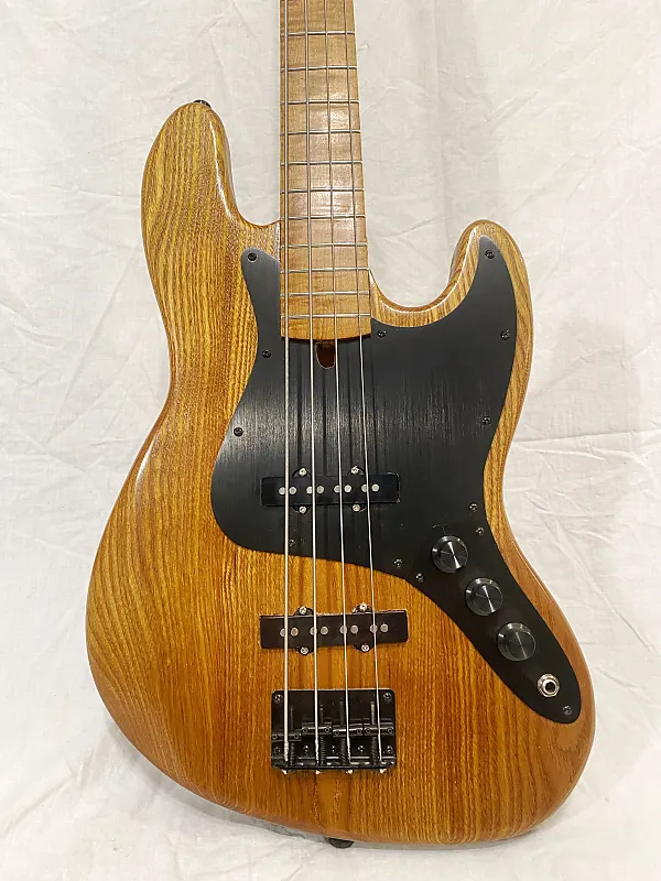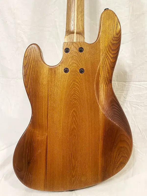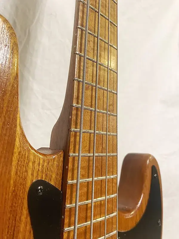 Гриф на болтах ламинированный: орех/клен/орех с акцентной вставкой из сапеле и клена. Гриф был вручную обработан до удобного профиля. Полностью оснащен механикой 4 в ряд и всей черной фурнитурой. Отделан вручную растираемым маслом и лаком.