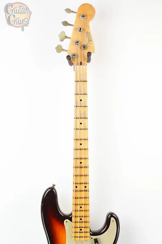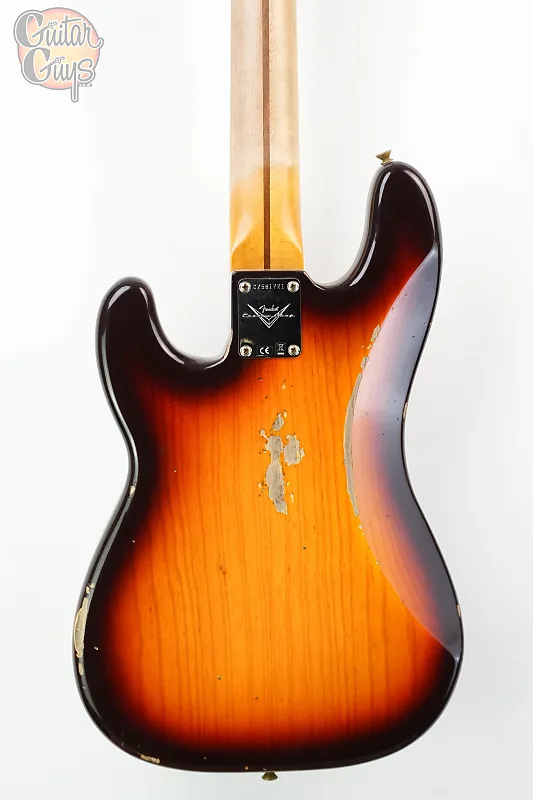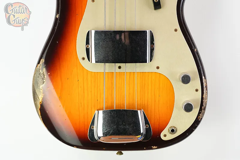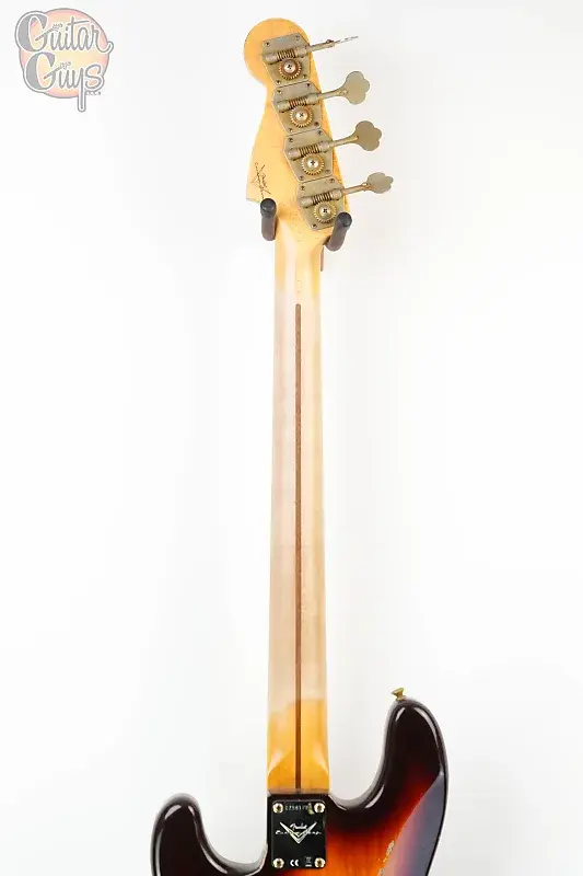Корпус из двух частей из избранной ольхи (ясень на солнце) и цельный кленовый гриф из распиленного на четверть клена покрыты лаком Relic и доступны в трех цветах, соответствующих периоду: Aged Desert Sand, Aged Sonic Blue и Super Faded Aged Chocolate Three-Color Sunburst. Чтобы завершить знаковые черты золотой эры, золотой анодированный пикгард оснащен звукоснимателем P-Bass '57 с ручным заводом Custom Shop и винтажной проводкой.