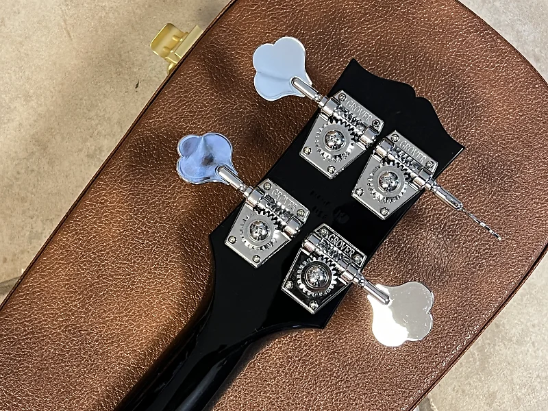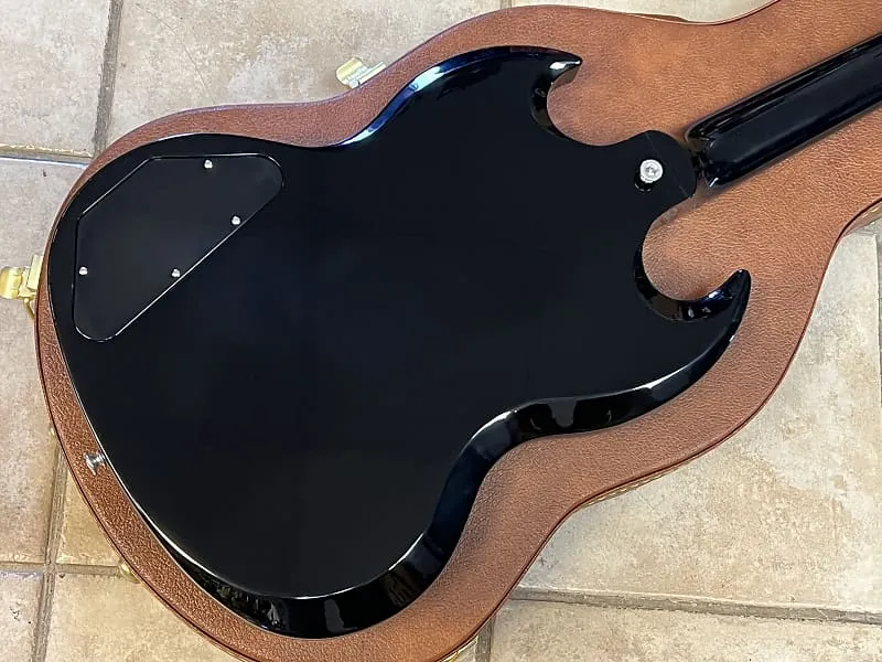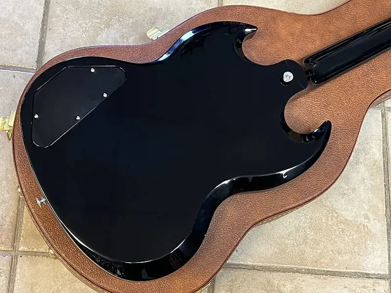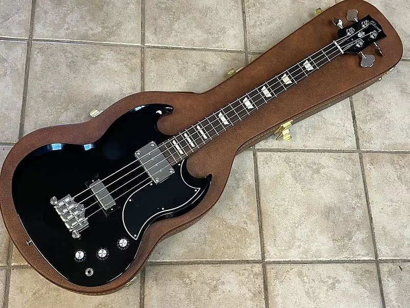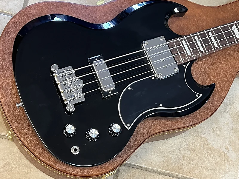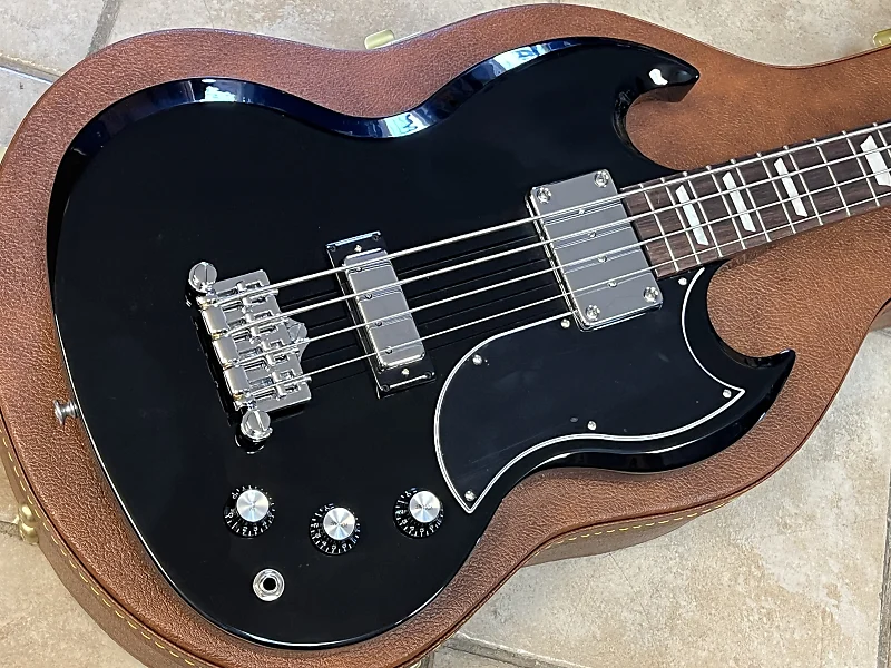 Бас-гитара SG также оснащена 5-слойным черным накладочным блоком, хромированной фурнитурой и черными ручками управления с серебряной вставкой.