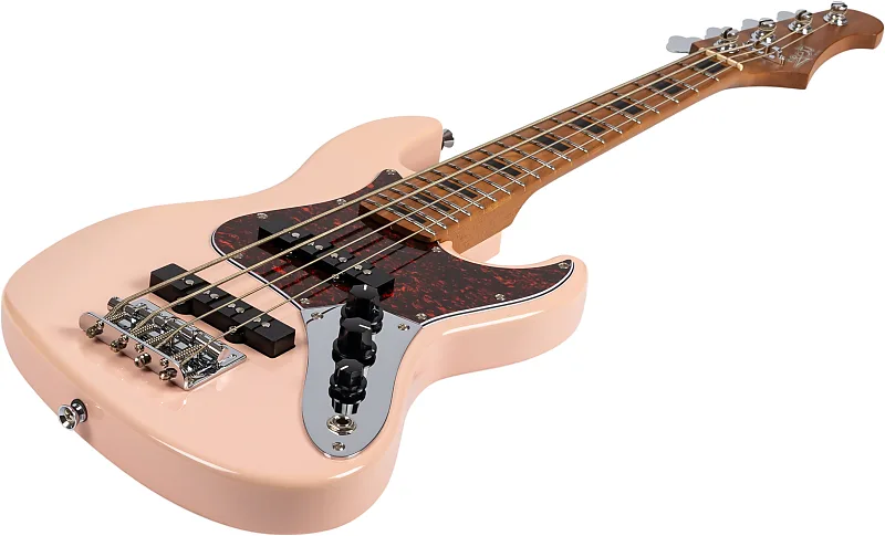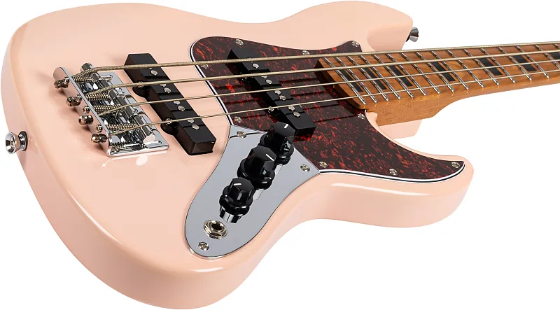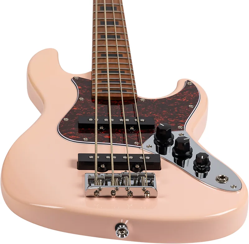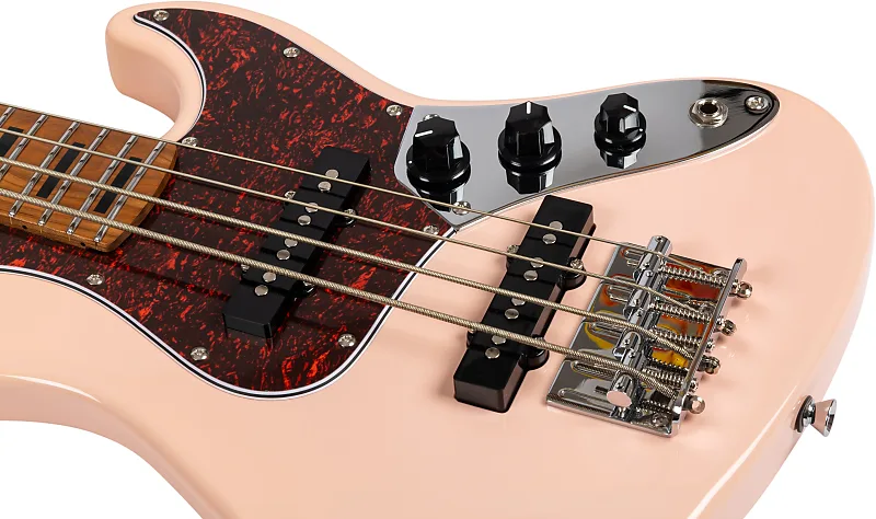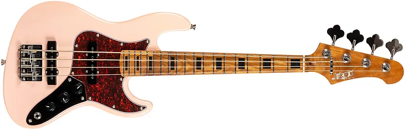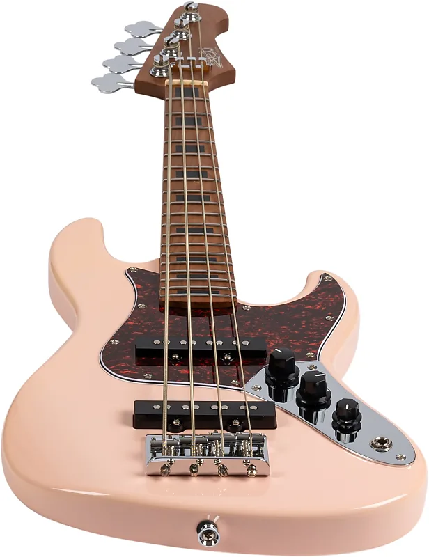 Бас-гитара Jet JB-300 в розовом цвете с грифом из жареного кленаС легким и резонансным корпусом из жареного тополя, в сочетании с жареным Гриф и грифовая дека из канадского клена - Jet JB-300 делает очень успешное первое впечатление. Этот бас действительно выглядит потрясающе, богатый глянцевый финиш полностью раскрывает розовый корпус. Черные пластиковые ручки и крышки звукоснимателей придают ему винтажный вид, который гармонирует с карамельным оттенком грифа и многослойным черепаховым медиаторным щитом.