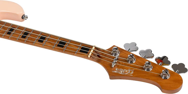 С точки зрения эргономики, JB-300 сразу кажется удобным для современного басиста, оснащен современным профилем грифа в форме «С» и грифовой декой с радиусом 12 дюймов. Что касается аппаратной части, установлен настоящий фиксированный мост с четырьмя седлами, а также хромированные колки открытого типа. Два сингл-котл Джаз-бас звукоснимателя управляются с помощью 2 ручек громкости и 1 ручки тембра.Jet JB-300 в розовом цвете - идеальный дорожный бас, значительно превосходящий свою ценовую категорию по характеристикам и оснащению. Абсолютный победитель во всех отношениях.