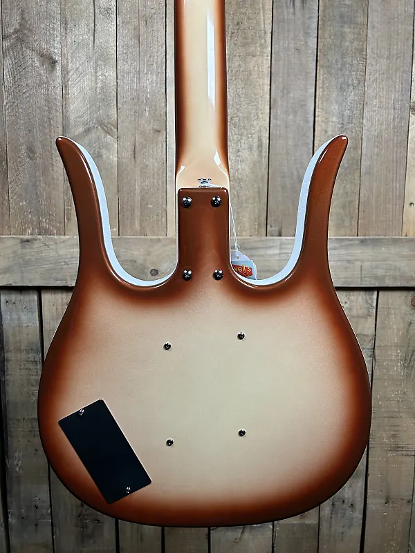 Бас-гитара Danelectro '59DC Long Scale в цвете Copper Burst - это поразительный инструмент, сочетающий в себе винтажную эстетику с современными удобствами игры. Вот подробное описание: