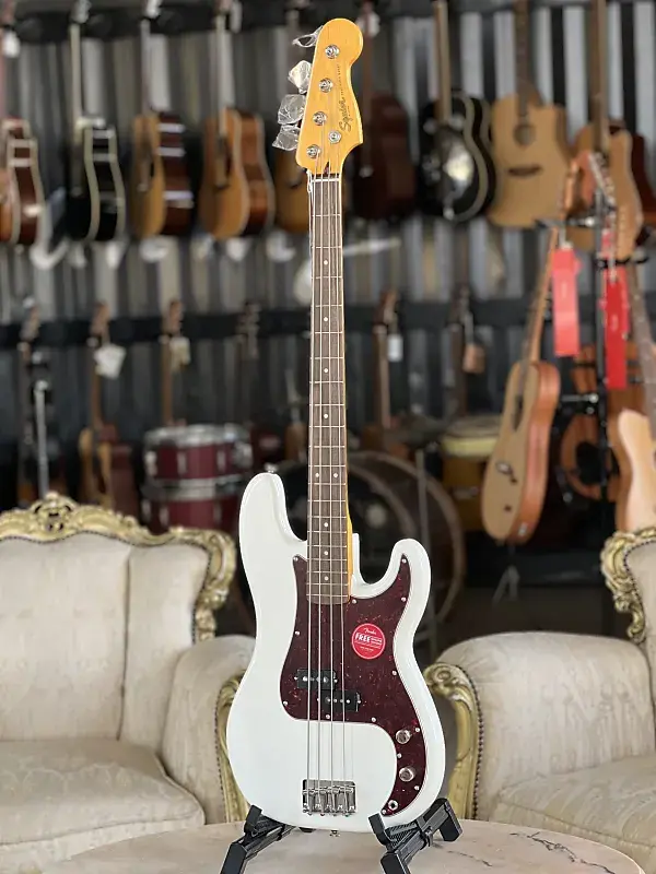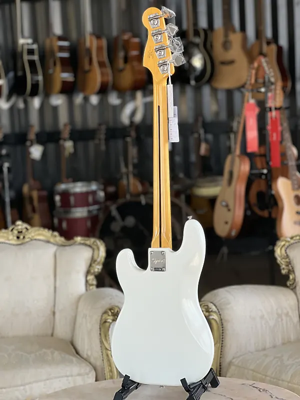 Серия Classic Vibe Корпус: Тополь Гриф: Клен Крепление грифа: Болтовое Накладка на гриф: Индийский лавр Вкладыши на грифе: Перламутровые точки Профиль грифа: C Радиус накладки: 241,3 мм (9,5") Длинный мензур Ширина порожка: 42,8 мм (1,69") Лады: 20 узких высоких Порожек: Кость Система звукоснимателей: Alnico split coil, разработанный Fender Управление: Основной громкость и общий тембр Задняя пластина: Четырехслойная черепаховая Мост: Винтажного стиля с 4 стальными седлами с резьбой Фурнитура: Никель Стеки струн: NPS .045 - .105 Цвет: Олимпийский белый