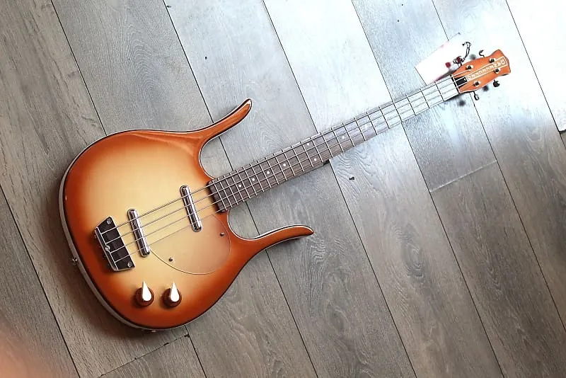 БАС ЛОНГХОРН Впервые изготовленный в 1958 году, этот скрипучий бас с короткой мензурой ценится за свой характерный звук. Слышен на множестве записей. Форма корпуса баса Longhorn 1958 года 29,75″ короткая дека с 24 ладами Традиционный бридж с одной розовой деревянной седлой 2 звукоснимателя lipstick с высоким выходом и высоким импедансом 2 комплекта управления громкостью/тембром.