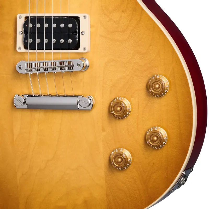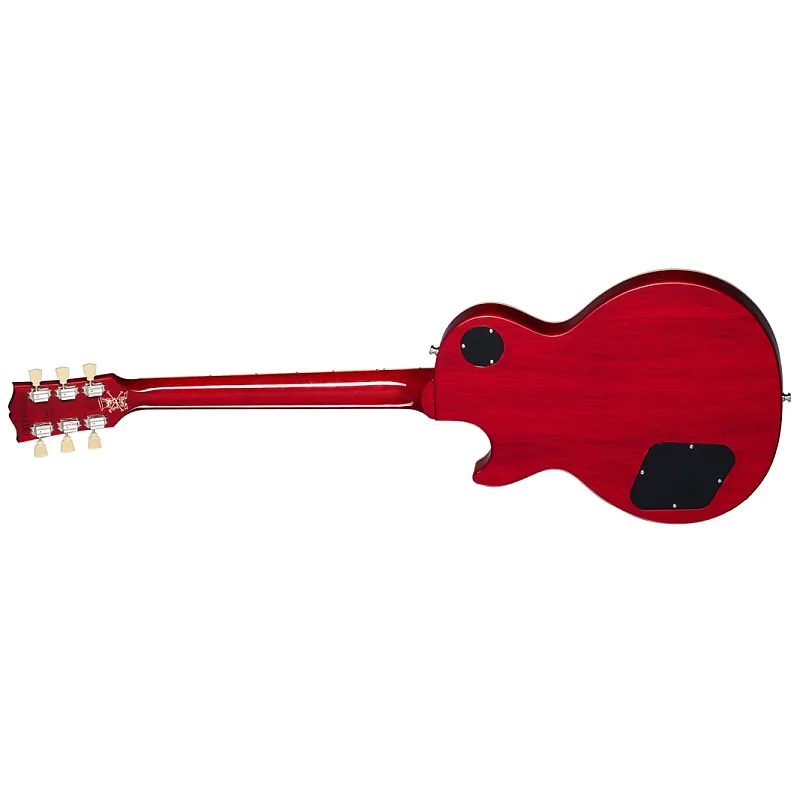 Корпус из невзвешенной махагони, трехслойная верхняя дека из клена, гриф из махагони с накладкой из палисандра и профилем грифа в стиле 50-х, кастомные звукосниматели Burstbucker с магнитами Alnico 2, кейс с жестким корпусом