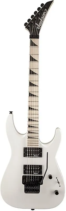 Арочная гитара JS32 DKA-M имеет элегантное арочное верхнее деко из тополя, прикручиваемый кленовый скоростной гриф с графитовым усилением, окантованную накладку из клена с комбинированным радиусом (12”-16”) и 24 джамбо ладами с черными накладками в форме плавников акулы и окантованной головкой грифа. Другие особенности включают два высокомощных звукоснимателя Jackson с керамическими магнитами и трехпозиционный переключатель лезвиеобразного типа, систему Floyd Rose с двойной блокировкой Jackson, черную фурнитуру и литые колки.