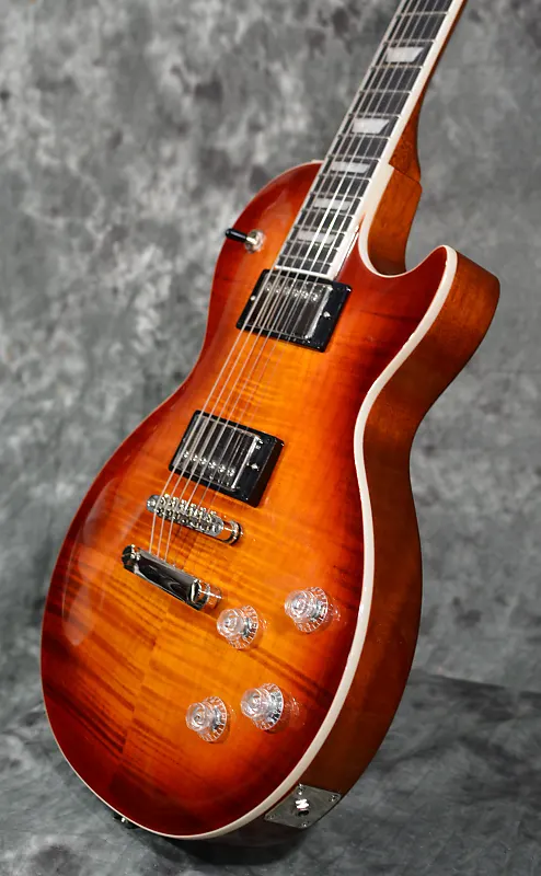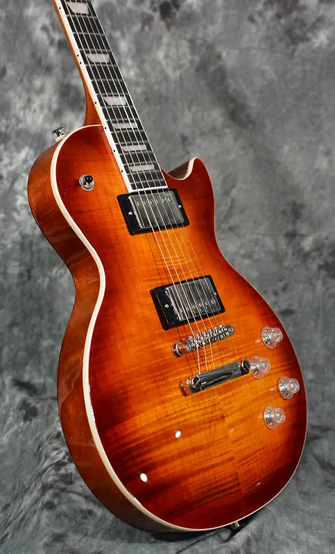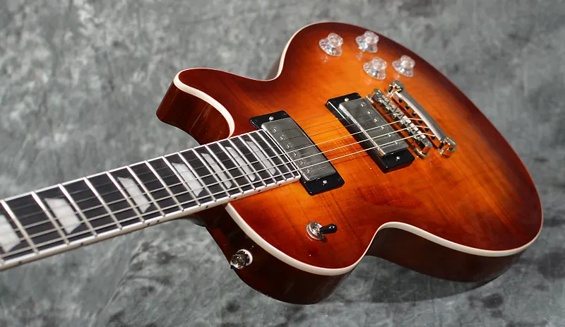 С красивой фигурной верхней декой, новыми отделками, а также с звукоснимателями ProBuckers с функцией разделения катушки, фазовым переключением, схемой приглушения высоких частот и накладкой грифа из черного дерева