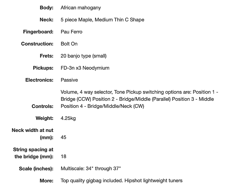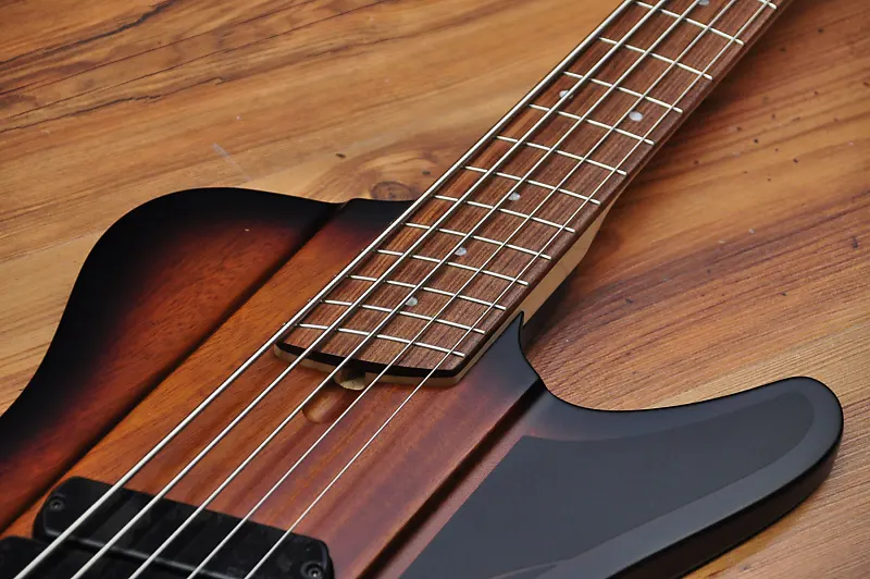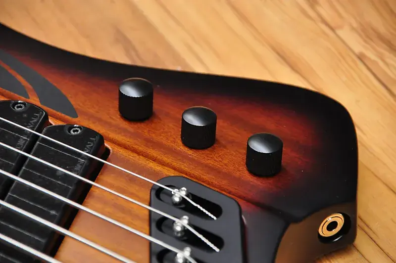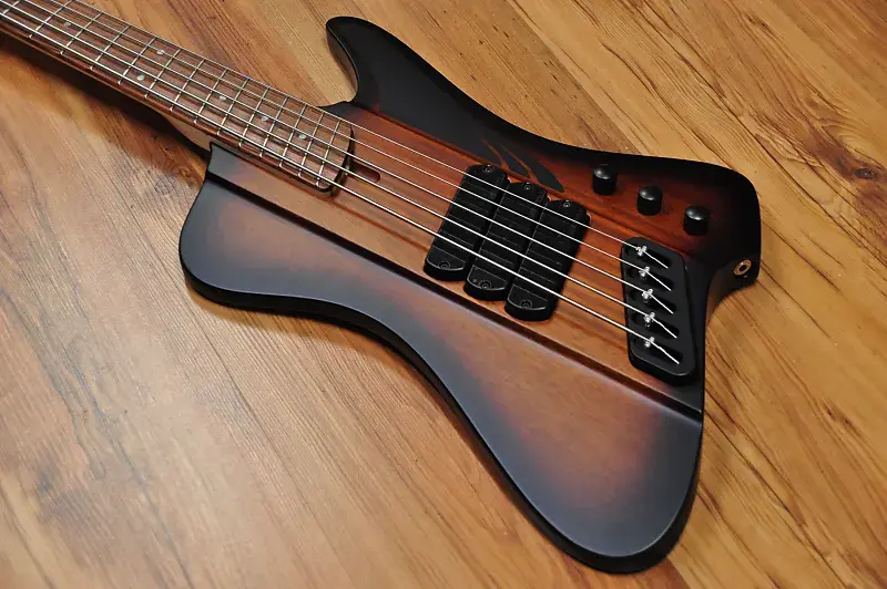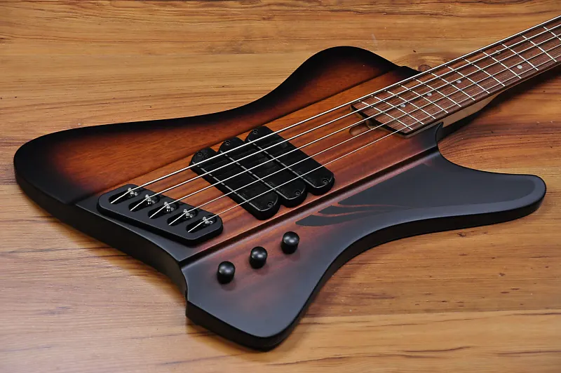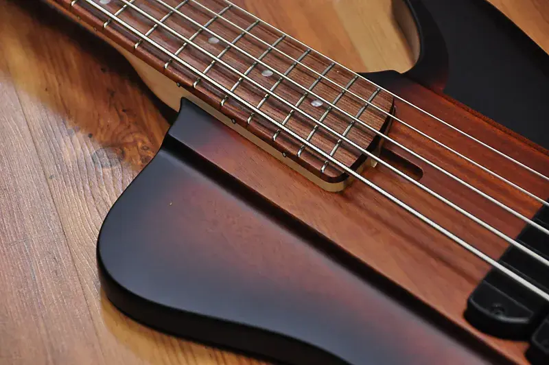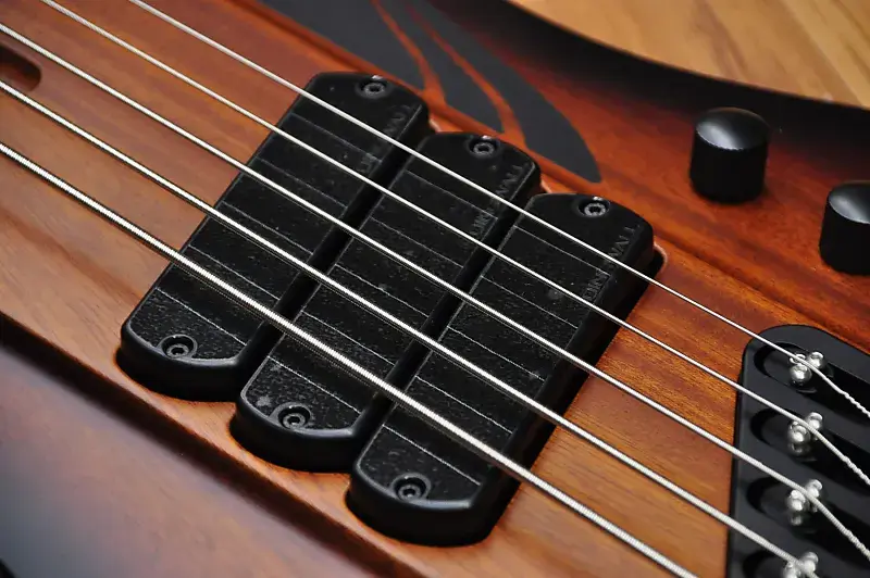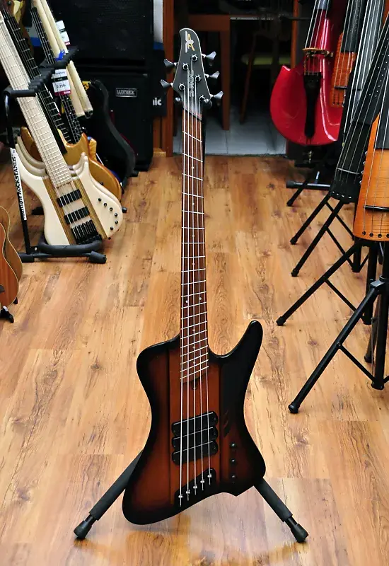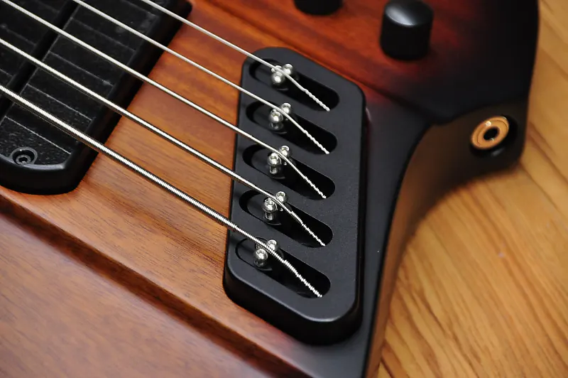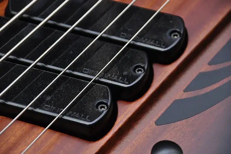 Канадский мастер-лютнер Шелдон Дингволл создает удивительные инструменты с начала 90-х годов, и он был настоящим пионером, поскольку внедрил Multiscale или Fanned Fret систему, разработанную Ральфом Новаком, что означало, что каждая струна инструмента должна иметь разную длину в зависимости от ноты, которую она должна воспроизводить при открытой игре. Факт того, что каждая струна имеет разную длину, конечно же, означает, что лады должны быть установлены «веерообразно», отсюда и название. Даже если эти бас-гитары выглядят современно и круто, они основаны на тех же принципах, что и старинные арфы и пианино. Струны на рояле или арфе различаются по длине в зависимости от ноты. Это означает, что чем ниже нота, тем длиннее должна быть струна. Даже вертикальные пианино имеют арфу с струнами различной длины. В результате гармонический ряд струн становится шире, и тембр, соответственно, более насыщенный. Чистая физика. Вся эта новая серия производится в Китае, но используются многие американские и европейские компоненты, что позволило Dingwall создавать инструменты с их фирменным тоном и производительностью по крайне доступным ценам. Финальная настройка и проверка проводятся в мастерской Dingwall в Канаде, так что вы можете быть уверены, что басы будут отлично звучать прямо из коробки. К счастью для вас, никаких регулировок для игры на этом инструменте не требуется. На самом деле они очень удобны для игры и эргономичны. Ваша левая рука просто ложится на ноты без необходимости менять технику. Это модель D Roc, и она оснащена корпусом из африканского красного дерева и пятислойной грифом из клена с накладкой из пау ферро, и это полностью пассивный инструмент. Цвет действительно классический - Vintage Burst. Это действительно круто, потому что напоминает классический бас Thunderbird. Этот инструмент оснащен 3 Звукосниматели Dingwall FD-3N с неодимовыми магнитами, которые мощные и плавные, но при этом обладают агрессивным тоном. Они полностью без шума, поэтому будут прекрасно работать как на сцене, так и в студии. Умный роторный переключатель предлагает 4 различных позиции для множества отличных тонов. Чистый звук этих звукоснимателей просто превосходен, если вам нужно прорезать звучание группы. Также, если вы используете какой-либо внешний Overdrive или Distortion, эти звукосниматели будут работать невероятно хорошо. Просто используйте регулятор тембра, если нужно немного приглушить звук или получить более традиционный тип звучания. Дизайн Multiscale обеспечивает равномерность тона и громкости для каждой струны, что просто идеально. Нижняя B, конечно же, феноменальна благодаря увеличенной длине и натяжению, но хорошая новость в том, что это не влияет на другие струны. (многие струны G кажутся слишком тугими на басах с длинной мензурой). Наблюдается равномерность тона и громкости от струны к струне, что просто идеально. На самом деле дополнительное напряжение означает, что вы можете мягко играть на низком B и получать больше четкости, чем когда играете эту струну на басе с мензурой 34" или 35" с интенсивным усилием. Также на нее можно сильно ударить, и она ответит очень хорошо. Классный бас и студийный ас Ли Склар предложил использовать маленькие лады типа банжо, так как они дают менее металлический тон и более плавные глиссандо/быструю игру по сравнению с джамбо-ладьями. Индивидуальные бриджи 