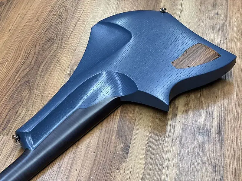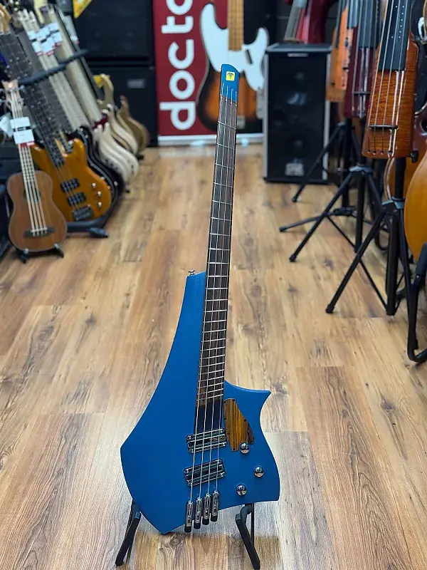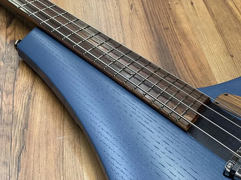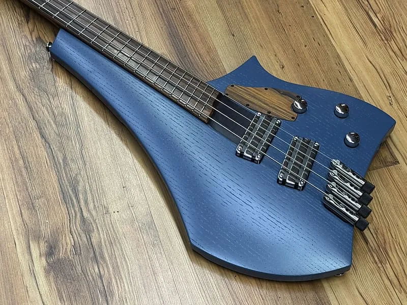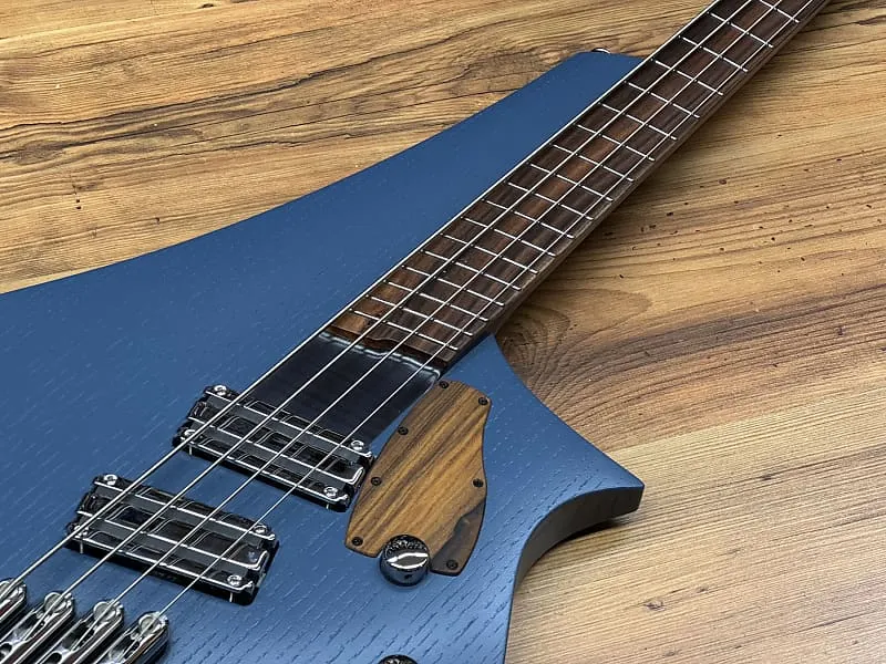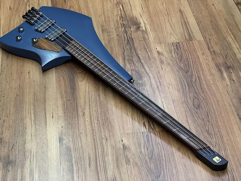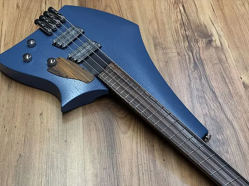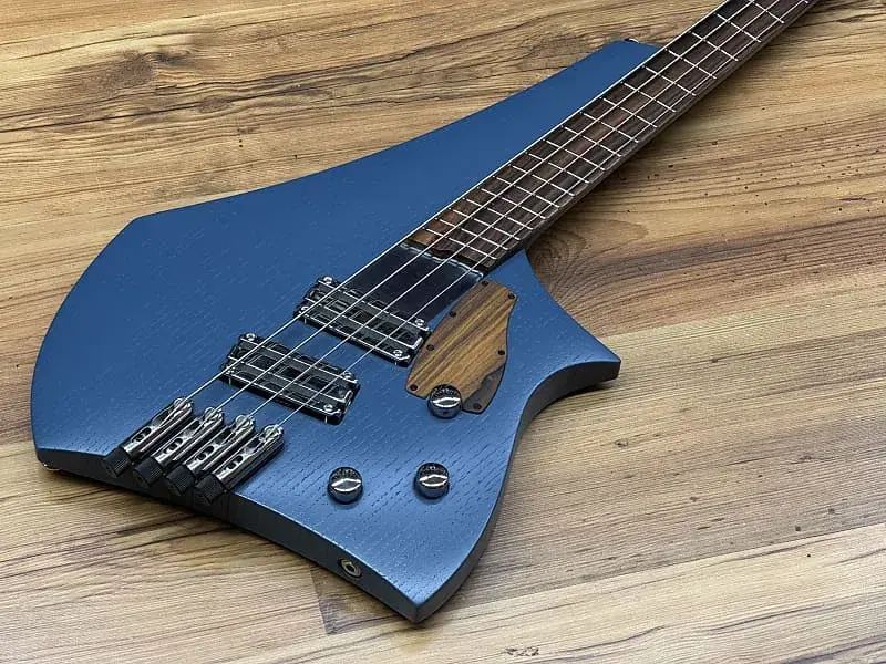 Это первый Meta бас, который появился у нас в магазине, и это модель Veil в версии Medium Scale. Стандартная длина мензуры для более дерзкого и среднечастотного инструмента, чтобы чувствовать грув и выделяться в миксе. Обеспечивая элегантную чистую линию. Конечно, это смелый дизайн, но хорошая новость в том, что на нем чрезвычайно удобно играть как сидя, так и стоя. Это упомянутый ранее концепт «форма следует функции». Мы любим оригинальные дизайнерские инструменты, особенно если они так хорошо реализованы, как этот. Легко заметить уникальный подход мастера и его концепцию при создании этого дизайна.