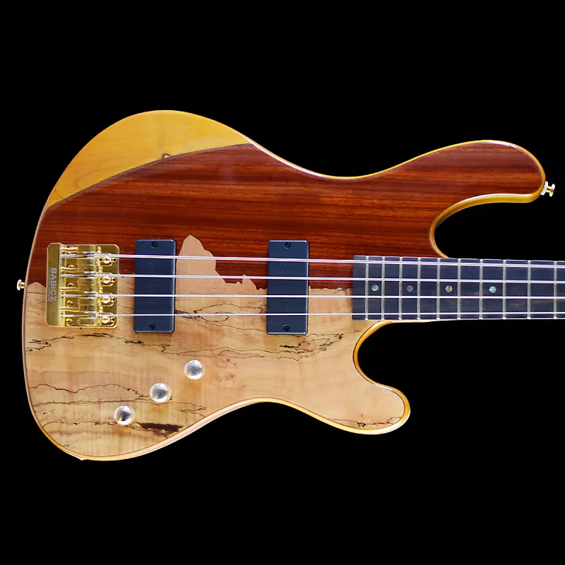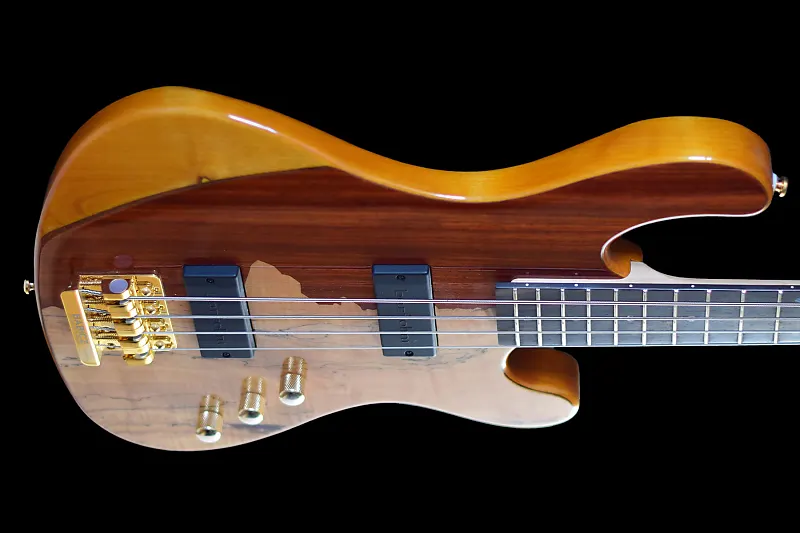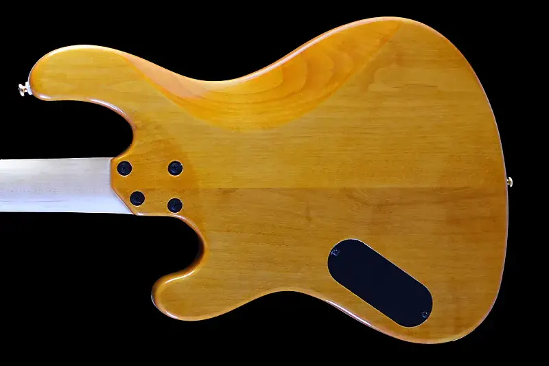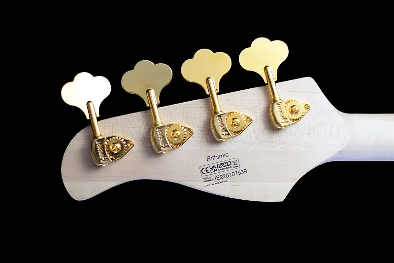 Бас-гитара имеет корпус из ольхи с красивой верхней декой из экзотической древесины. На корпусе установлены пара кастомных звукоснимателей Bartolini Jeff Berlin типа soapbar, мост Babicz Full Contact Hardware, один регулятор громкости, один регулятор баланса, один регулятор тембра, пассивная электроника и золотая фурнитура. Наклейка из твердой кленовой шейки дополняется грифом из розового дерева и головкой с четырьмя колками Hipshot Ultralite. Высота струн на басу низкая, и он настроен со струнами DR Strings Custom DDT (Drop Down Tuning), что облегчает игру. “После того как я долгое время играл на одной и той же бас-гитаре, я не был уверен, что другой производитель сможет создать инструмент, который мне понравится. Но как только я сыграл на первой Cort Rithimic, я был поражен. Я не мог поверить, насколько идеально эта бас-гитара получилась. Это удивительный инструмент, сделанный Cort для меня.”