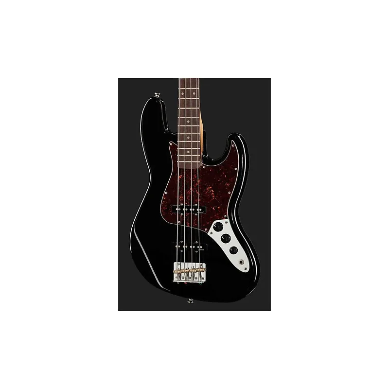 Классическая серияКомфортная форма корпуса с согласованной головой грифаКорпус: ТопольГриф: винтажный карамелизированный канадский клен для жесткого рокаКрепление грифа: на болтахФорма грифа: DГрифовая накладка: ЛаврИнкрустация: белые ABS точки20 средних ладовПорожек: белый графитШирина порожка: 38 мм (1,49'')Mensur: 864 мм (34,02'')Радиус накладки: 305 мм (12'')Декоративная накладка: 3-слойная. ПергаментЗвукосниматели: Roswell JBA-B alnico 5 с одной катушкой (бридж) - Roswell JBA-N alnico 5 с одной катушкой (гриф)Контроллеры: 2 x громкость, 1 x тембрМост: B401 CRОтделка фурнитуры: хромКолки: CB01-CRЦвет: черныйСтруны в комплекте: D’Addario EXL .045 - .105
