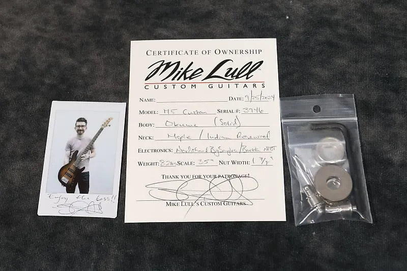 Совершенно новый Mike Lull M5 в цвете Tobacco Burst. Имеет цельный корпус из окуме и гриф из клена с накладкой из индийского палисандра. Это фантастический современный инструмент от команды Mike Lull. Бас поставляется в чехле ProTec с логотипом Mike Lull.