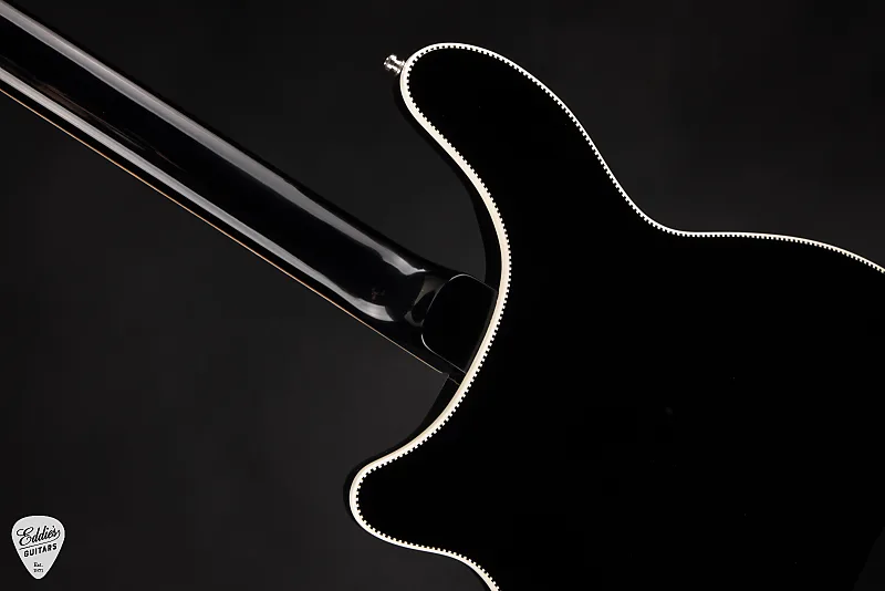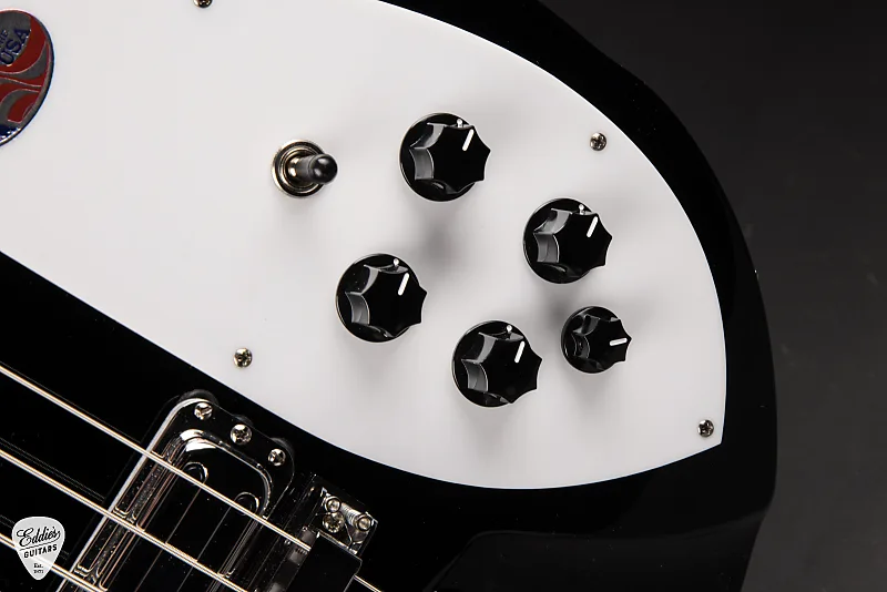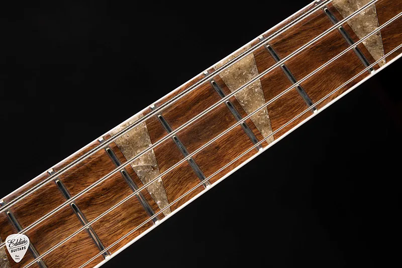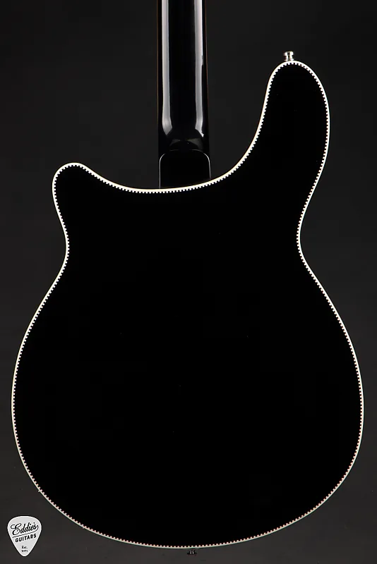 С первого взгляда на 4005V в цвете Jet Glo она излучает элегантность и стиль. Глянцевое черное покрытие, сочетающееся с традиционной формой корпуса Rickenbacker, производит потрясающее впечатление. Изогнутый корпус и винтажные элементы возвращают нас в золотую эпоху рок-н-ролла, при этом обеспечивая современную комфортную игру и высокие показатели исполнения. Белая окантовка и перламутровые инкрустации добавляют нотку ретро-шика, а классический струнодержатель в форме буквы «R» - идеальное ретро-касание.