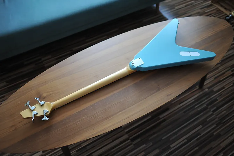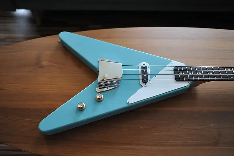 Это наша интерпретация классической V-образной формы с сочетанием с 51 P Bass. Бас-гитара изготовлена вручную нашим главным мастером из отборной акустической древесины. Корпус и гриф выполнены из европейского ясеня. Гриф прикручивается болтами и сделан из клена с накладкой из палисандра. Оснащена звукоснимателем 51P Bass Quarter Pound, намотанным вручную компанией Q Pickups.