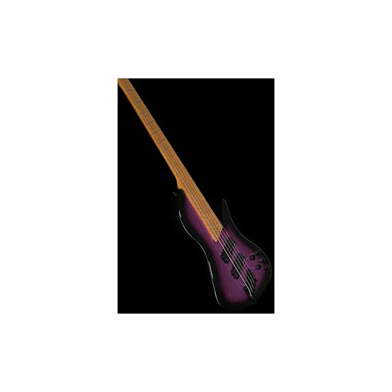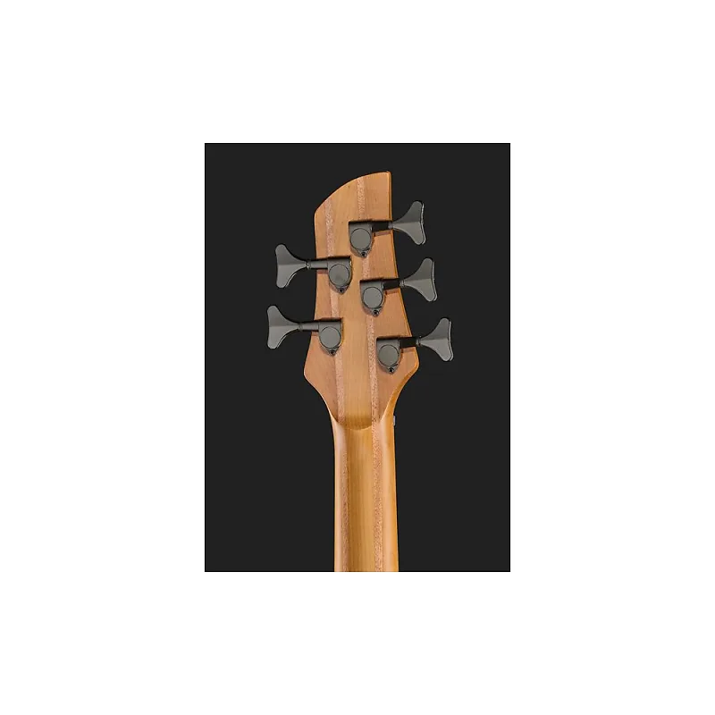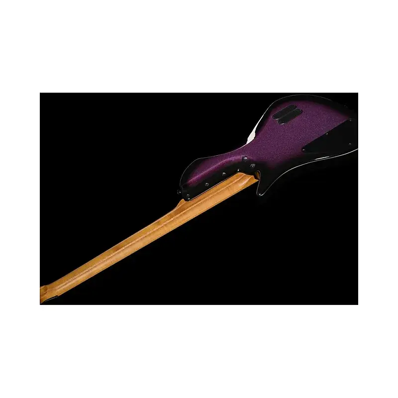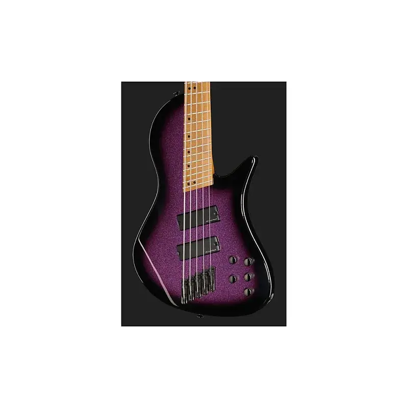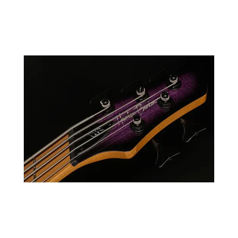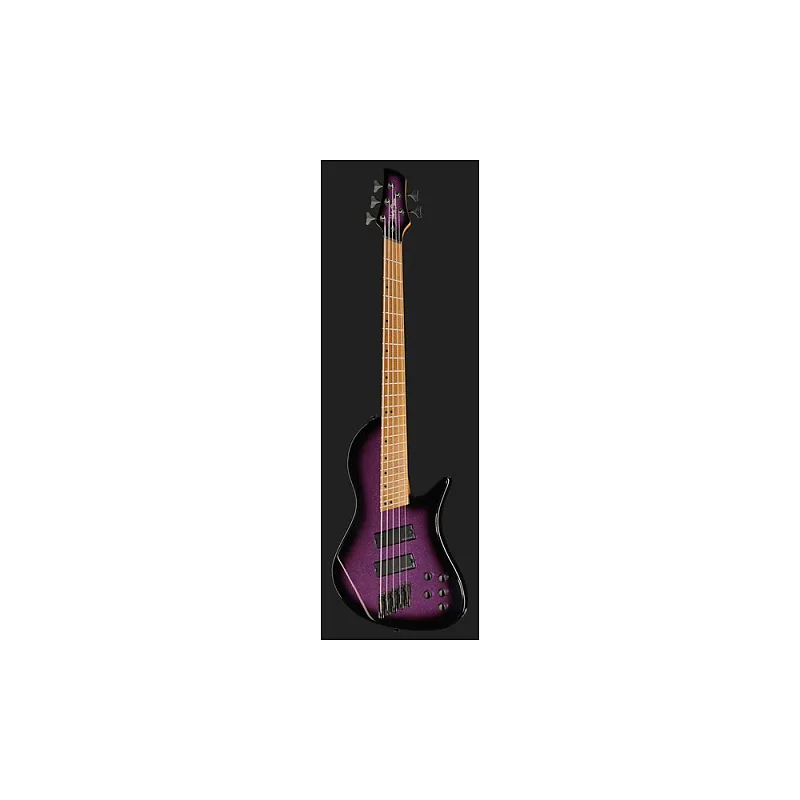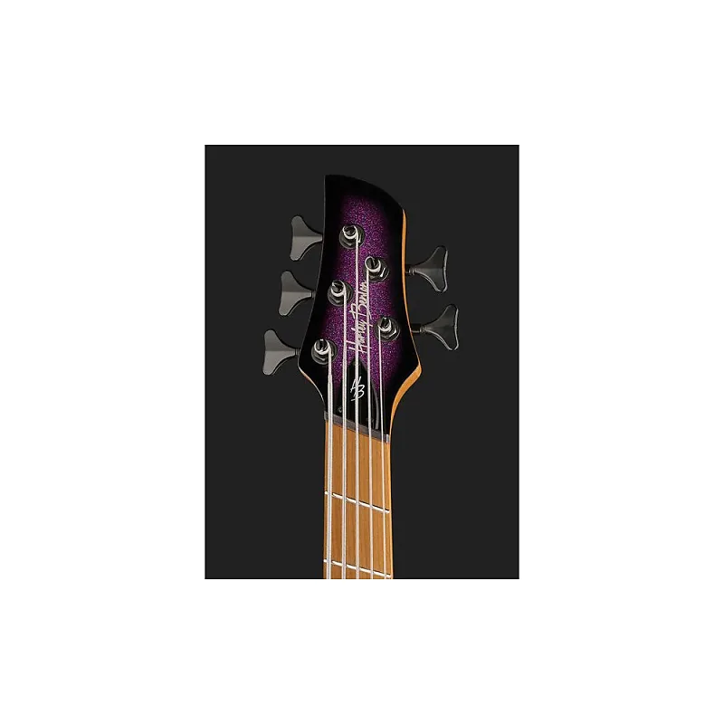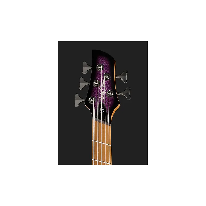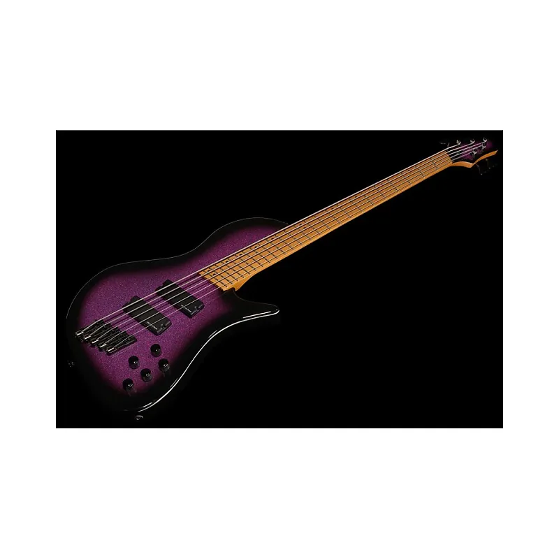 Корпус: ОкумеВерх: клен с рисунком «флейм берл»Гриф из 5 частей: обожженный канадский клен / окуме / обожженный канадский клет / окуме / обожженный канадский кленДвухсторонний анкерГрифовая накладка: АмарантМаркировка ладов: смещенные точки и флуоресцентные боковые точки (Ø 3 мм)Профиль грифа: C (толщина у 1-го лада 21,5 мм, у 12-го лада 22,5 мм)Радиус грифа: 400 ммМензура: 846 - 889 мм (33,3 - 35”) с мультимензурой24 лада из нержавеющей стали, 2,9 ммШирина верхнего порожка: 45 ммПорожек из костиЗвукосниматели: 2-х катушечный HBZ Custom Wound Ferrite HumbuckerАктивный 3-полосный эквалайзер / предусилитель (2 x 9 В)Регулятор громкости с функцией push/pull для переключения активного/пассивного режимовРегуляторы: баланс, низкие, средние и высокие частотыМост: Rising BA-1011 FingertailКолки: Jinho Die CastЧерная фурнитура DLXСтруны: HB .045 - .065 - .080 - .100 - .130Цвет: Amethyst Sparkle (Аметистовый блеск)