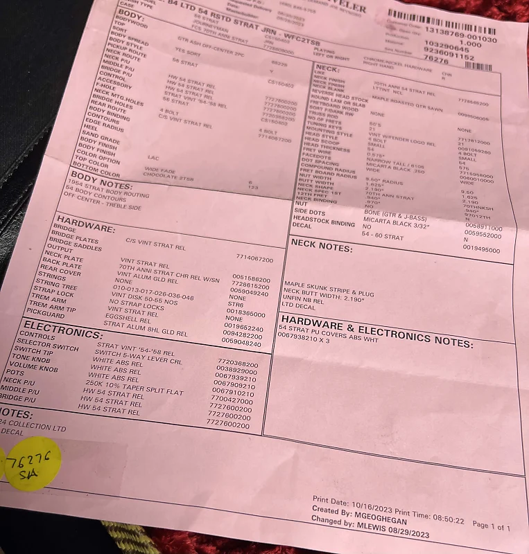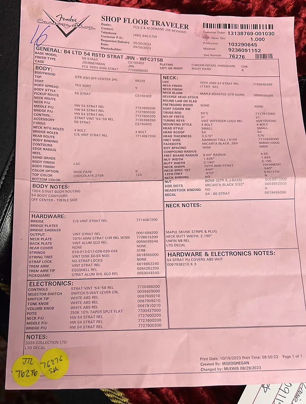 Эта коллекция 2024 года LTD 54 Stratocaster, 70-летний юбилей с жареной грифовой доской!~