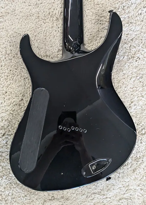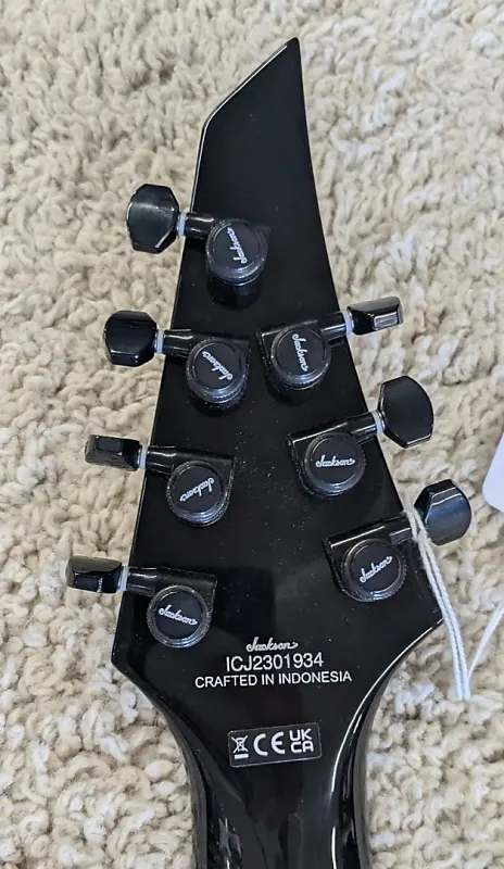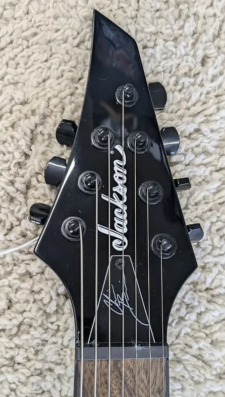 Неоспоримая сила, Pro Series Signature Chris Broderick Soloist HT7 выполнена в зловещем глянцевом черном цвете с соответствующей реверсивной головкой грифа Jackson AT-1 3x4 и черной фурнитурой.