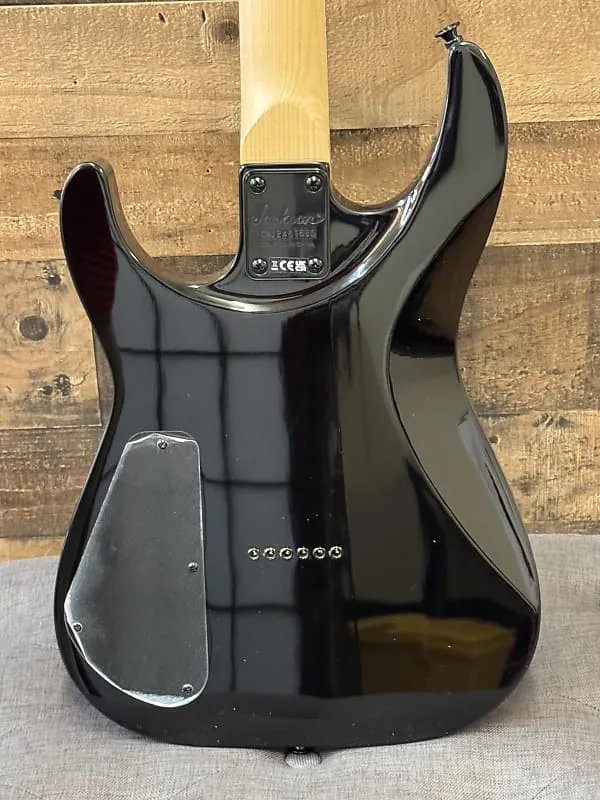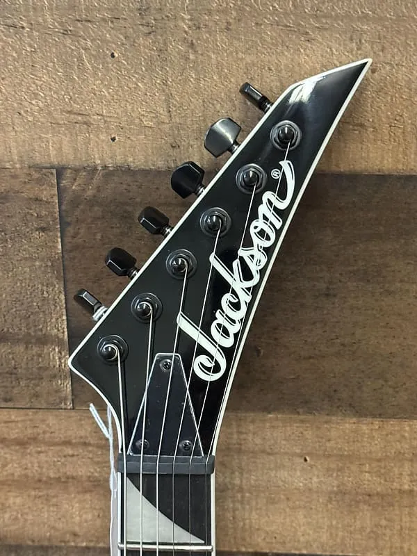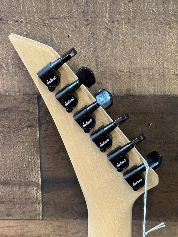 Доступно в цветах Transparent Black Burst, Transparent Green Burst и Transparent Purple Burst с заостренной головкой Jackson 6-в-лайн черного цвета и черной фурнитурой